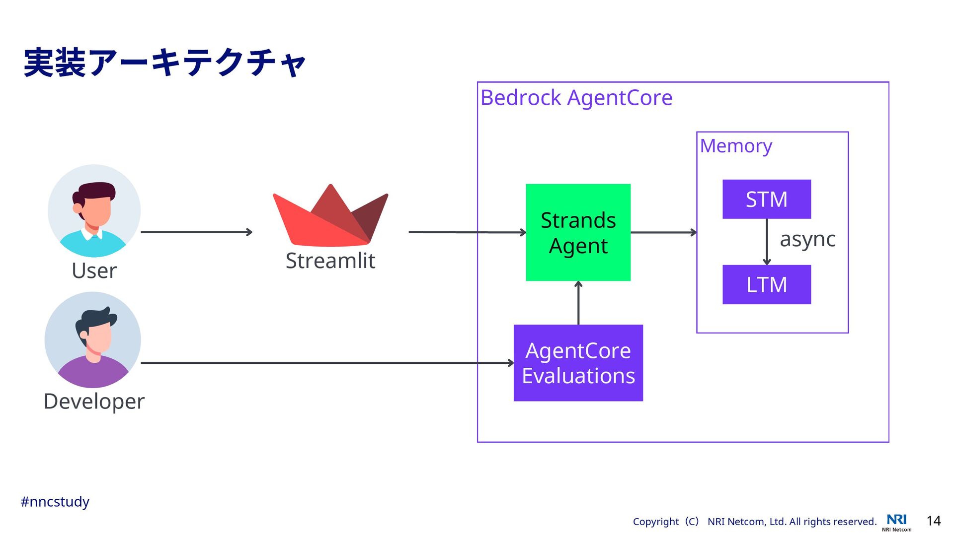 #nncstudy User Bedrock AgentCore Memory Strands Agent STM Streamlit AgentCore Evaluations Developer async LTM 14