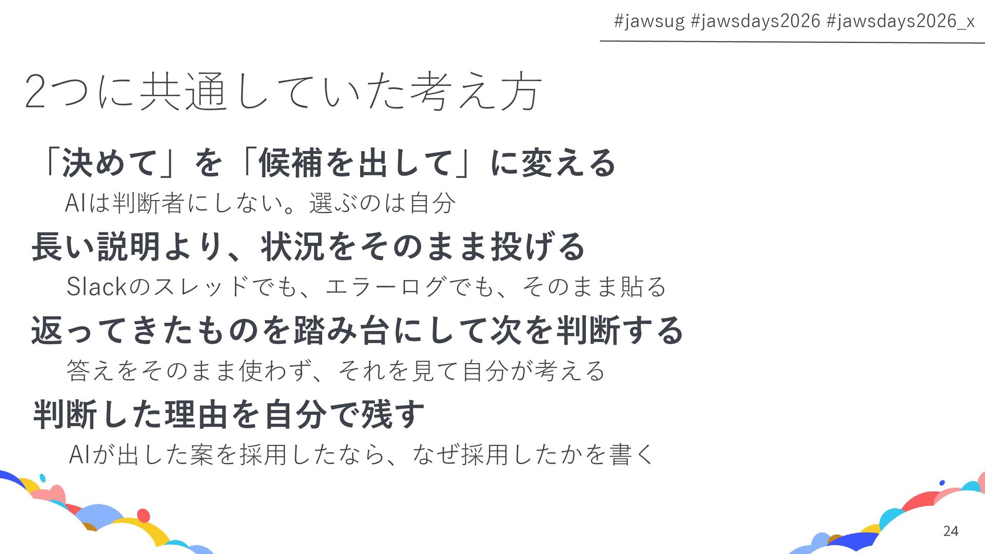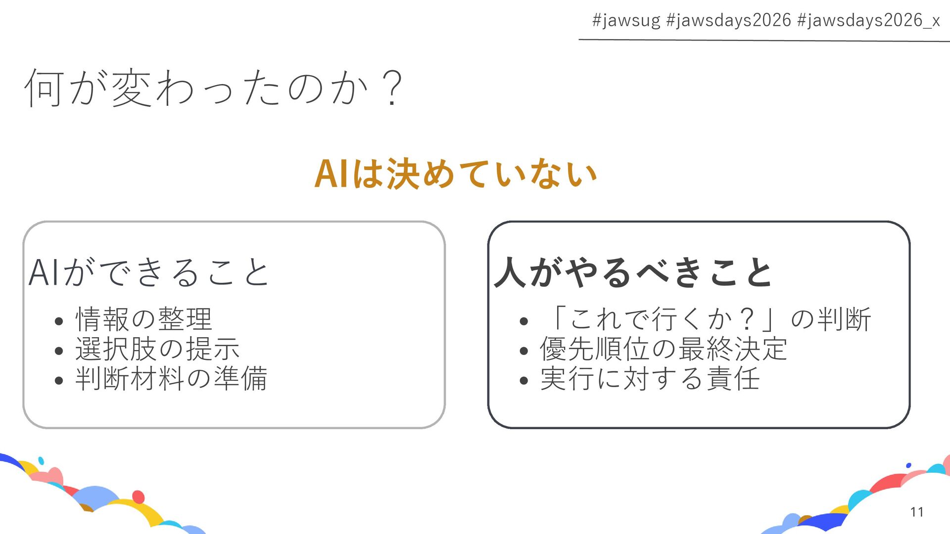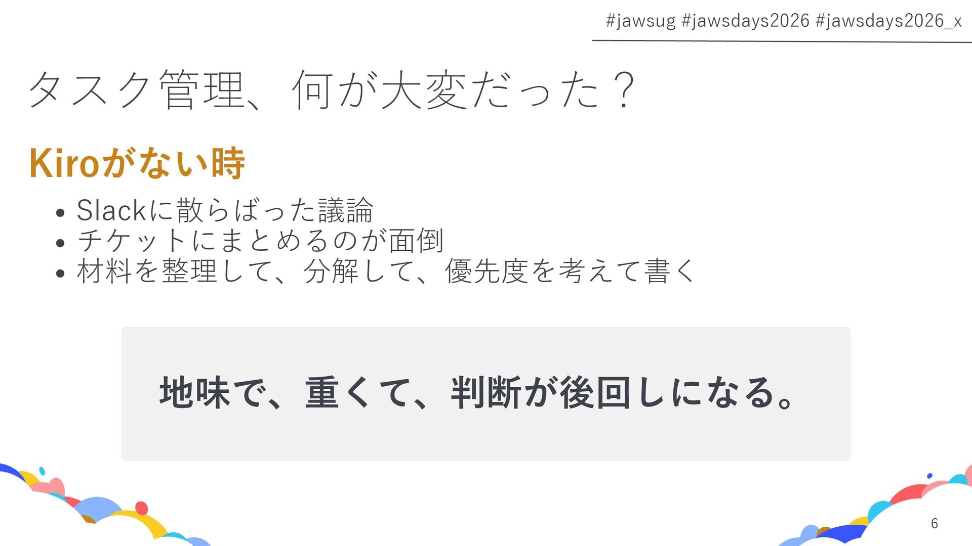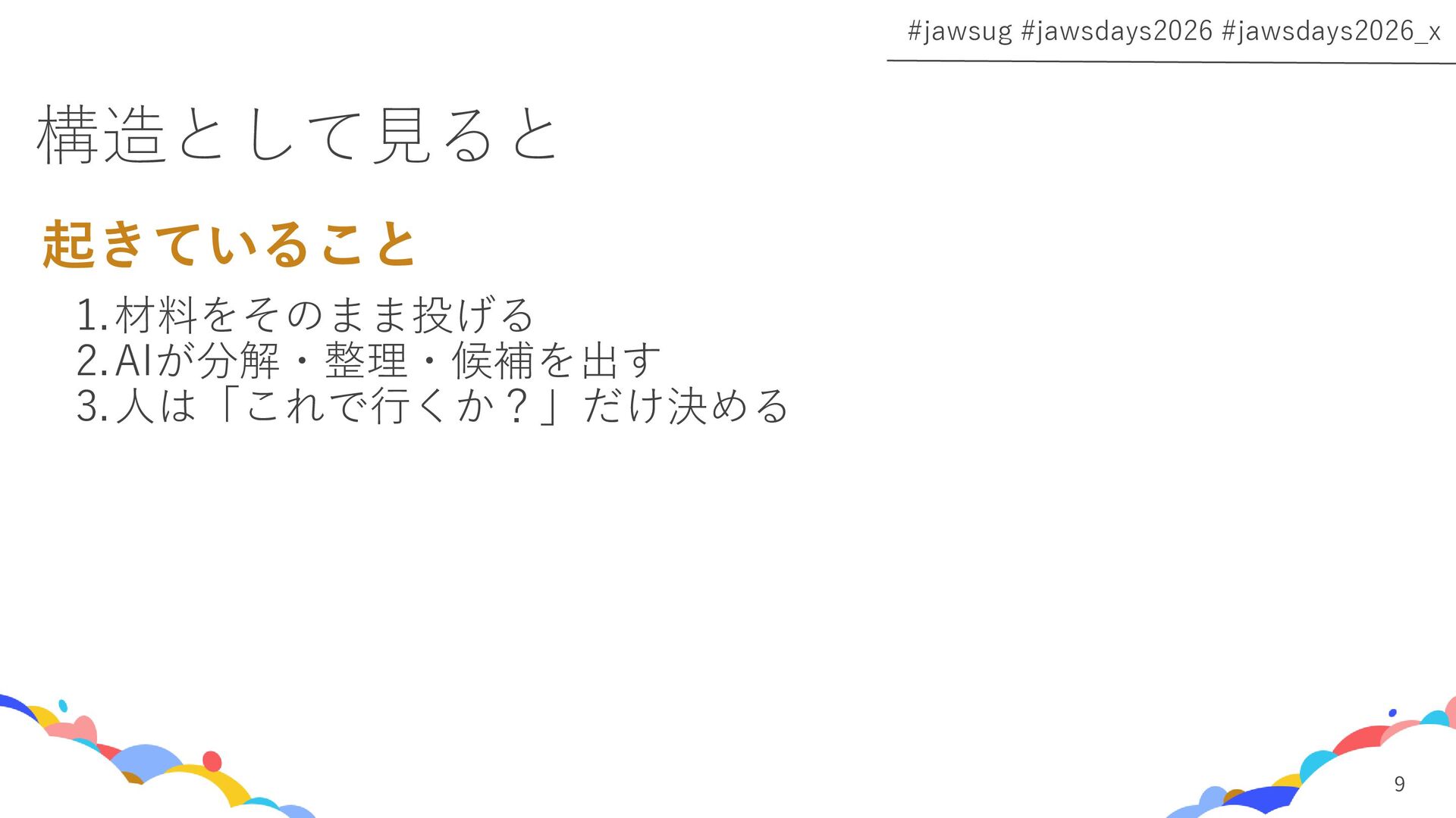 このセッションでは、実際の失敗プロセスをもとに、AIと人の役割をどう分けたか、暗黙知がどうチームに伝わるようになったか、そして境界を決めたら何が変わったかを話します。