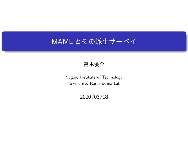 the original work of Finn et al. [15], and first-order MAML and Reptile results are from Nichol et al. [43]. iMAML with gradient descent (GD) uses 16 and 25 steps for 5-way and 20-way tasks respectively. iMAML with Hessian-free uses 5 CG steps to compute the search direction and performs line-search to pick step size. Both versions of iMAML use = 2.0 for regularization, and 5 CG steps to compute the task meta-gradient. Algorithm 5-way 1-shot 5-way 5-shot 20-way 1-shot 20-way 5-shot MAML [15] 98.7 ± 0.4% 99.9 ± 0.1% 95.8 ± 0.3% 98.9 ± 0.2% first-order MAML [15] 98.3 ± 0.5% 99.2 ± 0.2% 89.4 ± 0.5% 97.9 ± 0.1% Reptile [43] 97.68 ± 0.04% 99.48 ± 0.06% 89.43 ± 0.14% 97.12 ± 0.32% iMAML, GD (ours) 99.16 ± 0.35% 99.67 ± 0.12% 94.46 ± 0.42% 98.69 ± 0.1% iMAML, Hessian-Free (ours) 99.50 ± 0.26% 99.74 ± 0.11% 96.18 ± 0.36% 99.14 ± 0.1% dataset for different numbers of class labels and shots (in the N-way, K-shot setting), and compare two variants of iMAML with published results of the most closely related algorithms: MAML, FOMAML, and Reptile. While these methods are not state-of-the-art on this benchmark, they pro- vide an apples-to-apples comparison for studying the use of implicit gradients in optimization-based meta-learning. For a fair comparison, we use the identical convolutional architecture as these prior works. Note however that architecture tuning can lead to better results for all algorithms [27]. The first variant of iMAML we consider involves solving the inner level problem (the regularized objective function in Eq. 4) using gradient descent. The meta-gradient is computed using conjugate gradient, and the meta-parameters are updated using Adam. This presents the most straightforward comparison with MAML, which would follow a similar procedure, but backpropagate through the path of optimization as opposed to invoking implicit differentiation. The second variant of iMAML uses a second order method for the inner level problem. In particular, we consider the Hessian-free or Newton-CG [44, 36] method. This method makes a local quadratic approximation to the objective function (in our case, G( 0 , ✓) and approximately computes the Newton search direction using CG. Since CG requires only Hessian-vector products, this way of approximating the Newton search di- rection is scalable to large deep neural networks. The step size can be computed using regularization, damping, trust-region, or linesearch. We use a linesearch on the training loss in our experiments to also illustrate how our method can handle non-differentiable inner optimization loops. We refer the readers to Nocedal & Wright [44] and Martens [36] for a more detailed exposition of this optimiza- tion algorithm. Similar approaches have also gained prominence in reinforcement learning [52, 47]. e first variant of iMAML we consider involves solving the inner level problem (the regularized ective function in Eq. 4) using gradient descent. The meta-gradient is computed using conjugate dient, and the meta-parameters are updated using Adam. This presents the most straightforward mparison with MAML, which would follow a similar procedure, but backpropagate through the h of optimization as opposed to invoking implicit differentiation. The second variant of iMAML s a second order method for the inner level problem. In particular, we consider the Hessian-free Newton-CG [44, 36] method. This method makes a local quadratic approximation to the objective ction (in our case, G( 0 , ✓) and approximately computes the Newton search direction using CG. ce CG requires only Hessian-vector products, this way of approximating the Newton search di- ion is scalable to large deep neural networks. The step size can be computed using regularization, mping, trust-region, or linesearch. We use a linesearch on the training loss in our experiments to o illustrate how our method can handle non-differentiable inner optimization loops. We refer the ders to Nocedal & Wright [44] and Martens [36] for a more detailed exposition of this optimiza- n algorithm. Similar approaches have also gained prominence in reinforcement learning [52, 47]. Table 3: Mini-ImageNet 5-way-1-shot accuracy Algorithm 5-way 1-shot MAML 48.70 ± 1.84 % first-order MAML 48.07 ± 1.75 % Reptile 49.97 ± 0.32 % iMAML GD (ours) 48.96 ± 1.84 % iMAML HF (ours) 49.30 ± 1.88 % les 2 and 3 present the results on Omniglot Mini-ImageNet, respectively. On the Om- lot domain, we find that the GD version of AML is competitive with the full MAML algo- m, and substatially better than its approxima- ns (i.e., first-order MAML and Reptile), espe- ly for the harder 20-way tasks. We also find that AML with Hessian-free optimization performs stantially better than the other methods, suggest- that powerful optimizers in the inner loop can of- benifits to meta-learning. In the Mini-ImageNet main, we find that iMAML performs better than MAML and FOMAML. We used = 0.5 and 10 dient steps in the inner loop. We did not perform an extensive hyperparameter sweep, and expect the results can improve with better hyperparameters. 5 CG steps were used to compute the a-gradient. The Hessian-free version also uses 5 CG steps for the search direction. Additional erimental details are Appendix F. Related Work r work considers the general meta-learning problem [51, 55, 41], including few-shot learning [30, . Meta-learning approaches can generally be categorized into metric-learning approaches that n an embedding space where non-parametric nearest neighbors works well [29, 57, 54, 45, 3], ck-box approaches that train a recurrent or recursive neural network to take datapoints as input • Omniglot(্ஈ), Mini-ImageNet(Լஈ) Ͱͷਫ਼ͷൺֱ • Inner ͷ࠷దԽʹ Hessian-free Λ༻ͨ͠ iMAML ͕ڧ͍ • ಉۙ͡ࣅख๏Ͱ͋Δ FOMAML Reptile ͍͠λεΫ (20-way 1-shot) Ͱେ͖͘ਫ਼͕Լ͕Δ 52 / 90