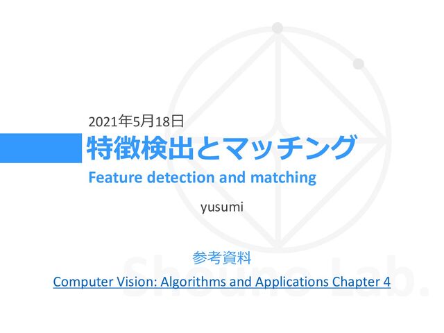 ➢画像処理の基礎 (2) – OpenCVによる基本的な例 東北大学大学院 http://www.ic.is.tohoku.ac.jp/~swk/lecture/ic2009/kagami_ic20090630.pdf ➢コンピュータビジョン アルゴリズムと応用 Richard Szenliski http://szeliski.org/Book/drafts/SzeliskiBook_20100903_draft.pdf ➢Computer Vision: Algorithms and Applications, Richard Szeliski http://szeliski.org/Book/drafts/SzeliskiBook_20100903_draft.pdf ➢Lecture 04: Feature Detection and Matching I https://spark-lab.com/wp-content/uploads/2020/10/lecture04-Feature- Detection-and-Matching-I-note.pdf