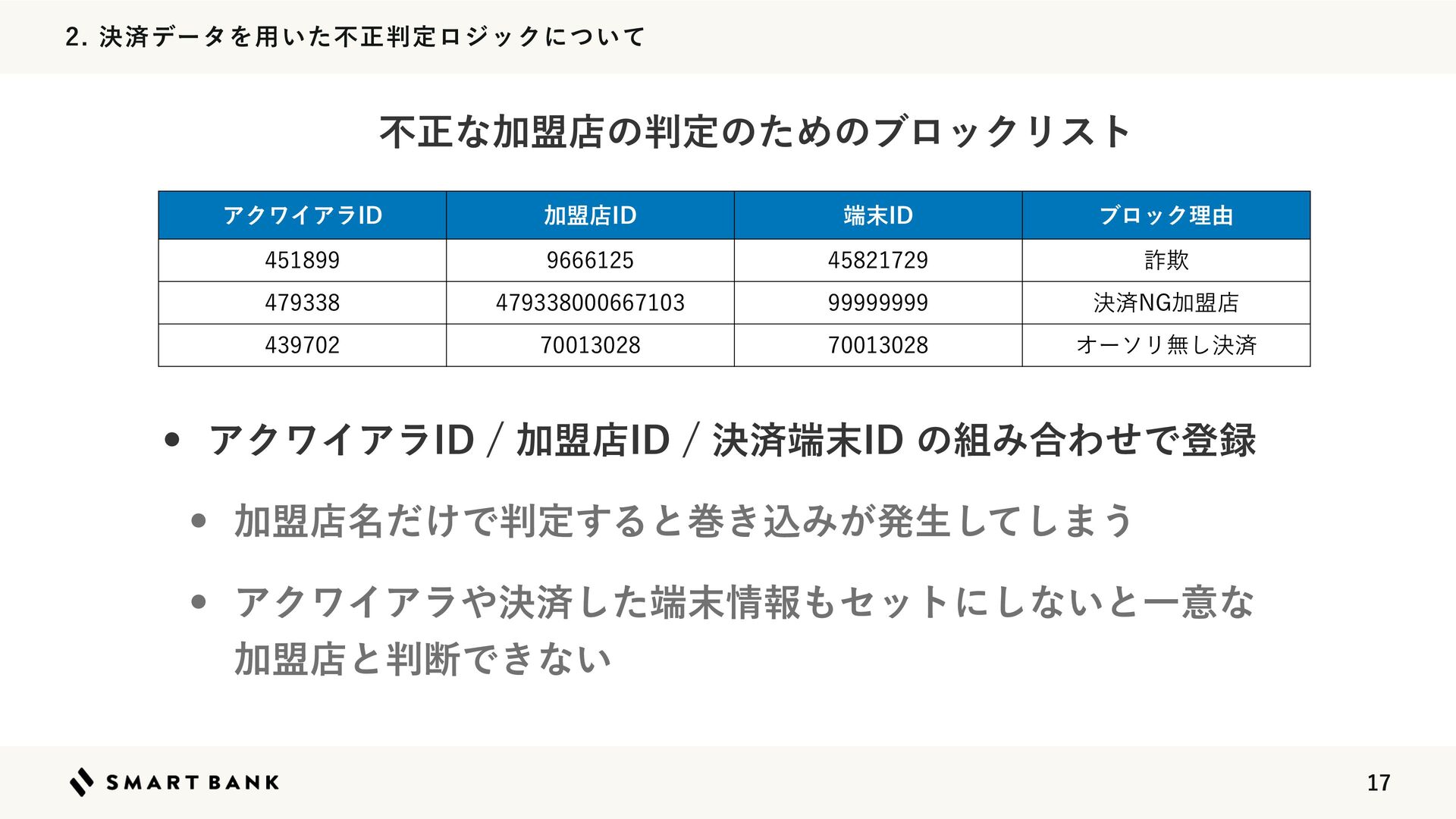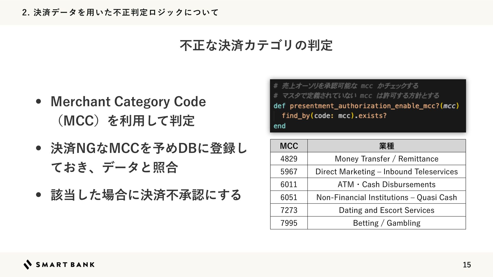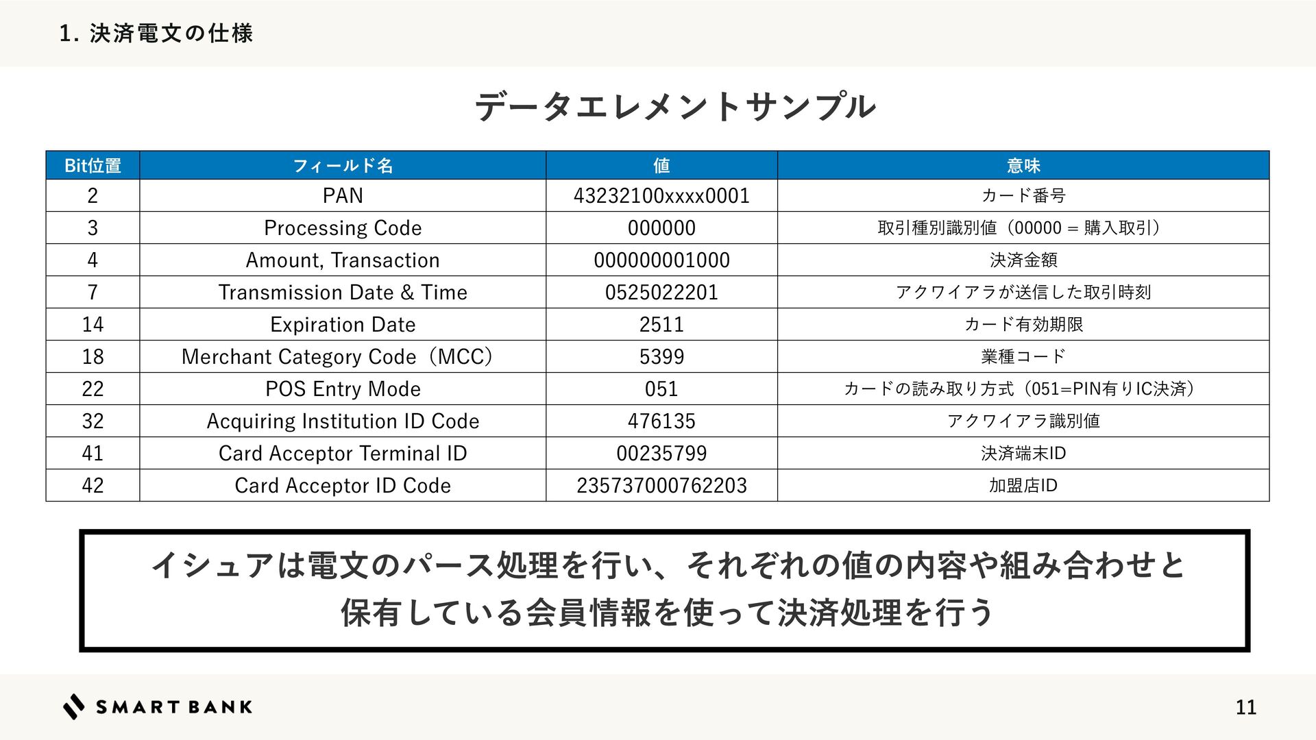 1SPDFTTJOH$PEF औҾछผࣝผʢߪೖऔҾʣ "NPVOU 5SBOTBDUJPO ܾࡁֹۚ 5SBOTNJTTJPO%BUF5JNF ΞΫϫΠΞϥ͕ૹ৴ͨ͠औҾ࣌ࠁ &YQJSBUJPO%BUF Χʔυ༗ޮظݶ .FSDIBOU$BUFHPSZ$PEFʢ.$$ʣ ۀछίʔυ 104&OUSZ.PEF ΧʔυͷಡΈऔΓํࣜʢ1*/༗Γ*$ܾࡁʣ "DRVJSJOH*OTUJUVUJPO*%$PEF ΞΫϫΠΞϥࣝผ $BSE"DDFQUPS5FSNJOBM*% ܾࡁ*% $BSE"DDFQUPS*%$PEF Ճໍళ*% ΠγϡΞిจͷύʔεॲཧΛߦ͍ɺͦΕͧΕͷͷ༰Έ߹Θͤͱ อ༗͍ͯ͠ΔձһใΛܾͬͯࡁॲཧΛߦ͏ σʔλΤϨϝϯταϯϓϧ