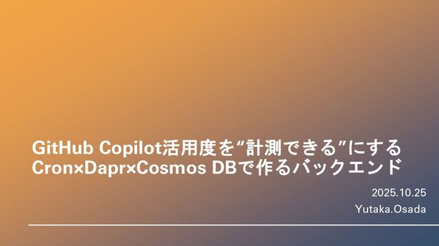 20251025_GitHub Copilot活用度を“計測できる”にする-Cron×Dapr×Cosmos DBで作るバックエンド