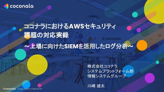 1. Copyright coconala Inc. All Rights Reserved. 2 Agenda ココナラで抱えていたセキュリティの課題 SIEM