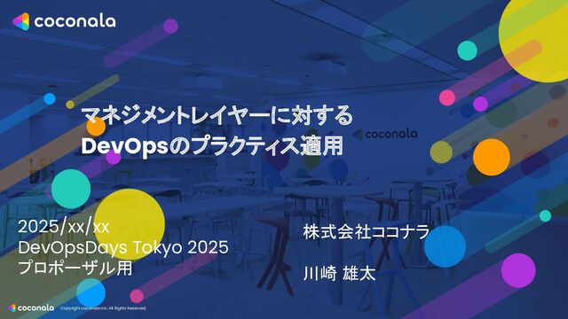 Copyright coconala Inc. All Rights Reserved. マネジメントレイヤーに対する DevOpsのプラクティス適用 株式会社ココナラ 川崎