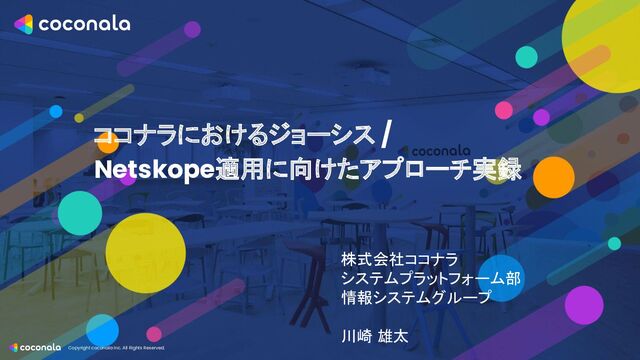タイトルは「ココナラにおけるジョーシス / Netskope適用に向けたアプローチ実録」