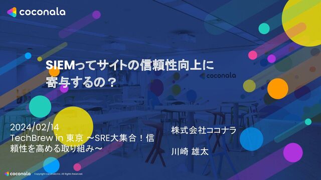 Copyright coconala Inc. All Rights Reserved. SIEMってサイトの信頼性向上に 寄与するの? 株式会社ココナラ 川崎
