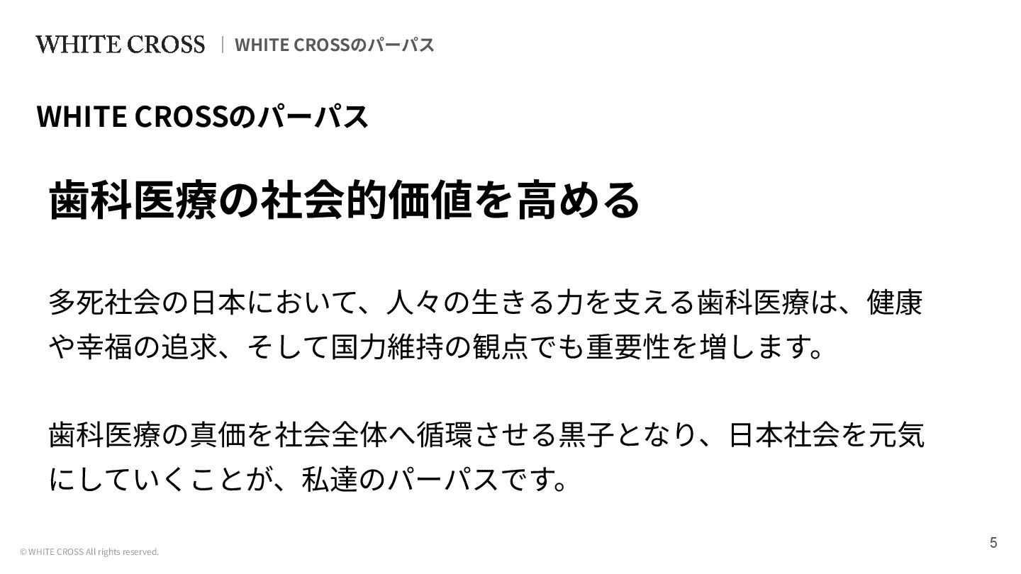 4. © WHITE CROSS All rights reserved. | WHITE CROSSのパーパス 「⻭科医療の社会的価値を⾼める」に込める意義(代表