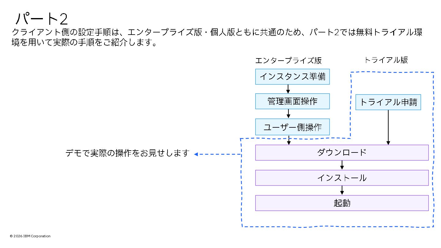 © 2026 IBM Corporation パート 2 エンタープライズ版 トライアル版 トライアル申請 デモで実際の操作をお見せします