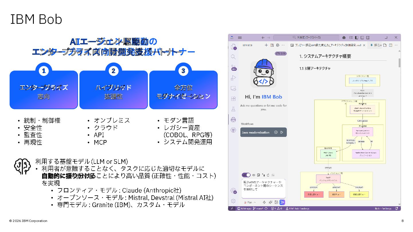 © 2026 IBM Corporation 8 IBM Bob エンタープライズ 志向 ハイブリッド