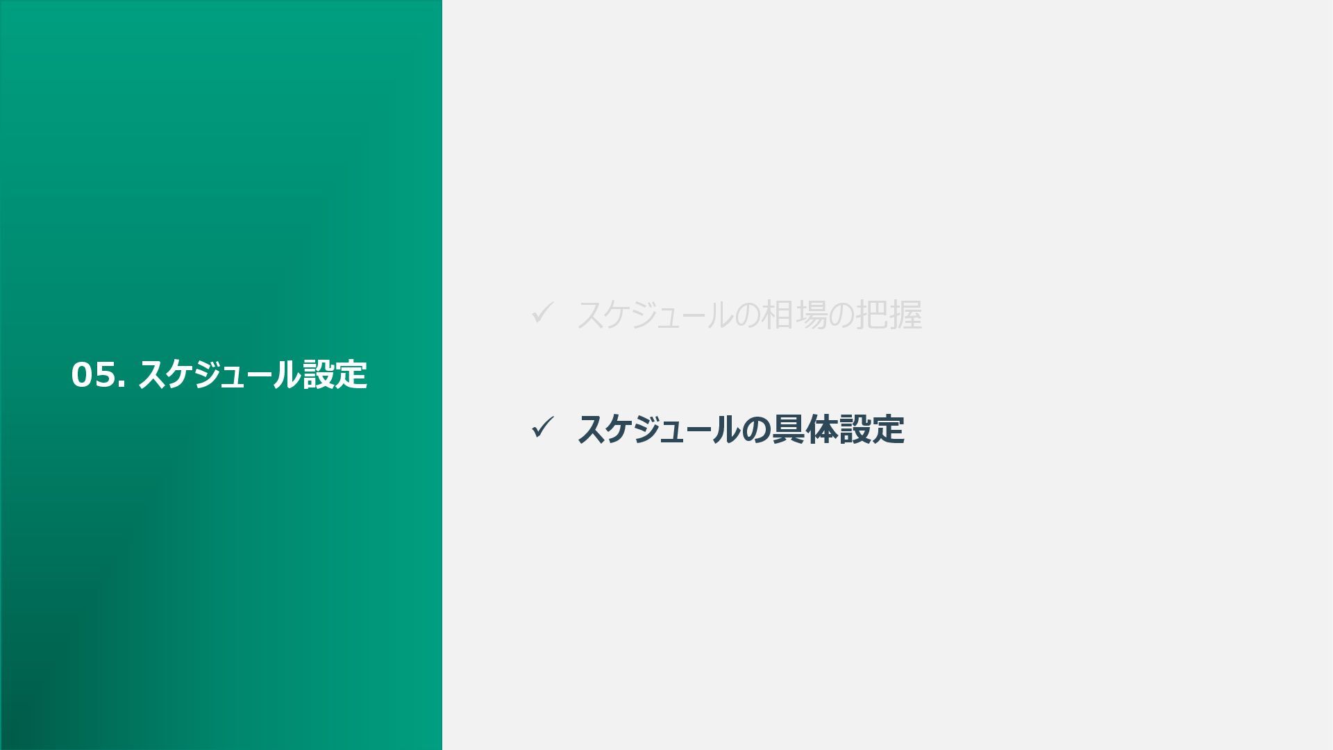 ✓ スケジュールの相場の把握 ✓ スケジュールの具体設定 05. スケジュール設定