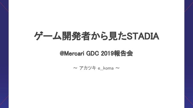 ゲーム開発者から見たSTADIA #mercariGDC の2019年報告会で発表した資料です。 STADIAに対する個人的な見解を書いてます。 動画スライドは個人が写っているかもしれないので削除しています。 #STADIA #Google #Mercari #GDC #GDC2019