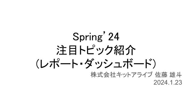 Spring’24 注目トピック紹介 (レポート・ダッシュボード) 株式会社キットアライブ 佐藤 雄斗 2024.1.23