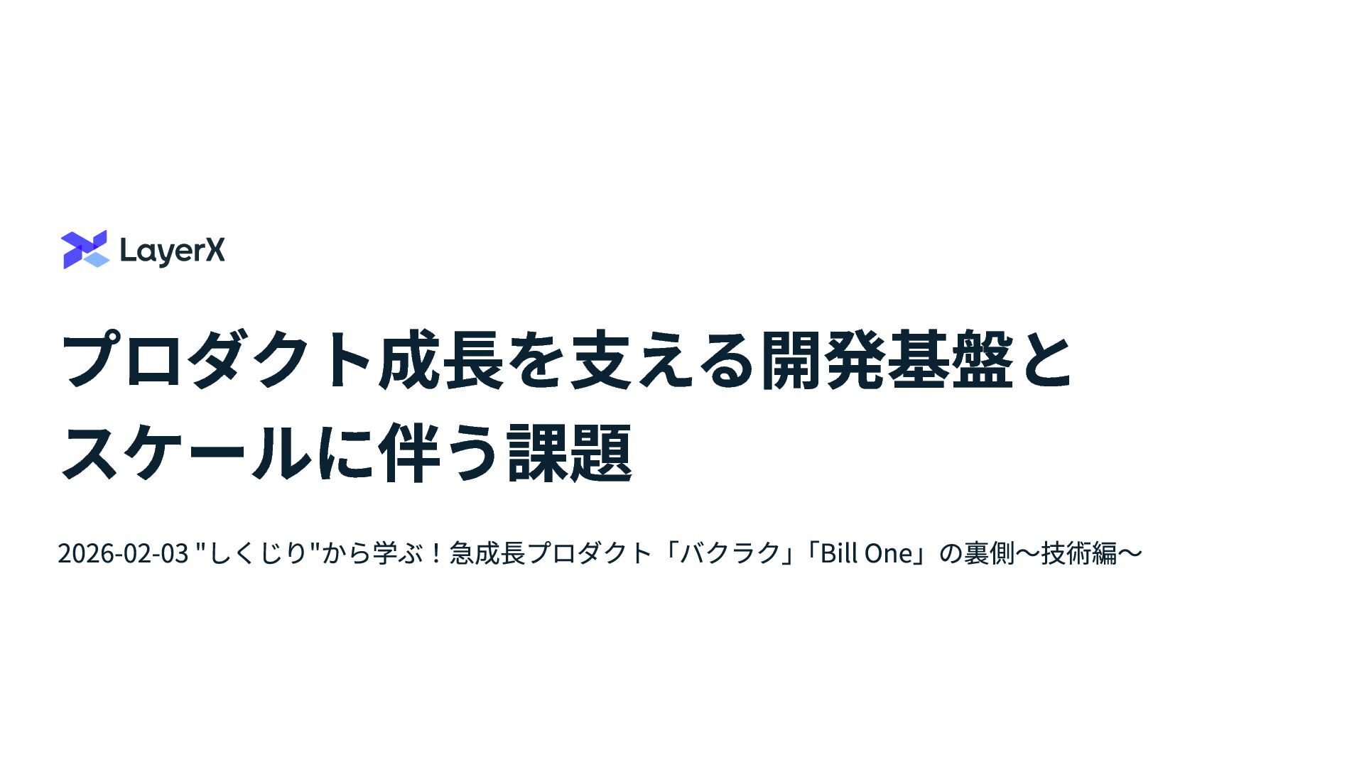 プロダクト成長を支える開発基盤と スケールに伴う課題 2026-02-03 "しくじり"から学ぶ!急成⻑プロダクト「バクラク」 「Bill One」の裏側~技術編~