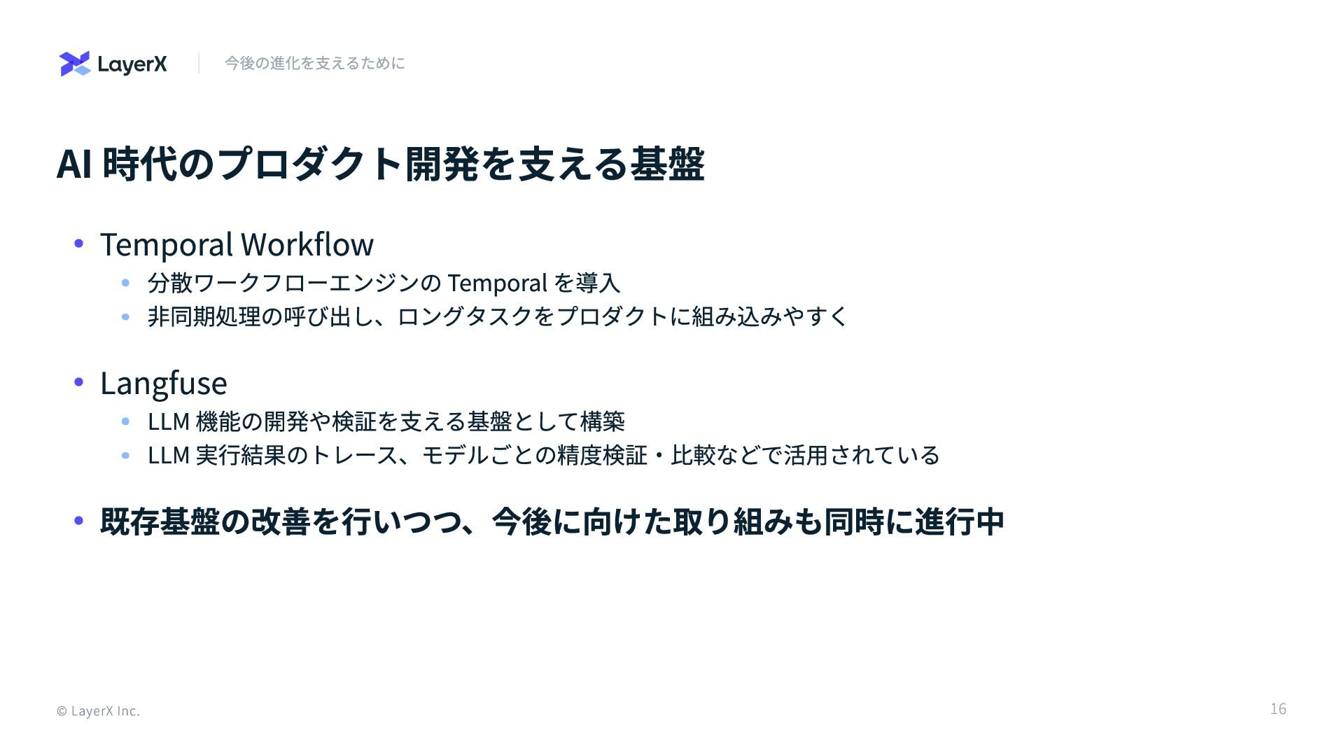 AI 時代のプロダクト開発を支える基盤 © LayerX Inc. 今後の進化を支えるために Temporal Workflow 分散ワークフローエンジンの Temporal