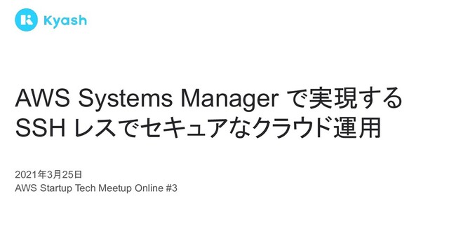 AWS Startup Tech Meetup Online #3 の登壇資料です。 ※映像はこちら