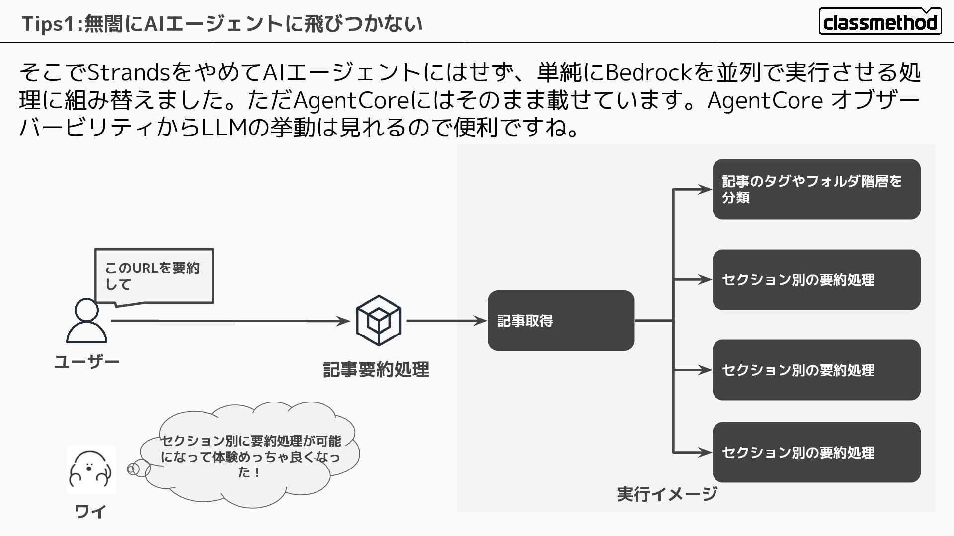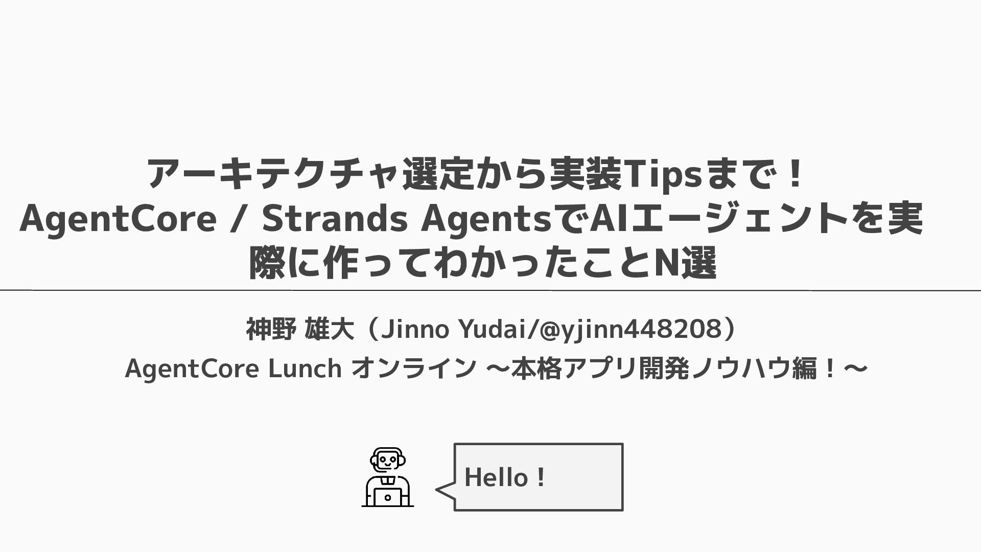 アーキテクチャ選定から実装Tipsまで! AgentCore / Strands Agents...