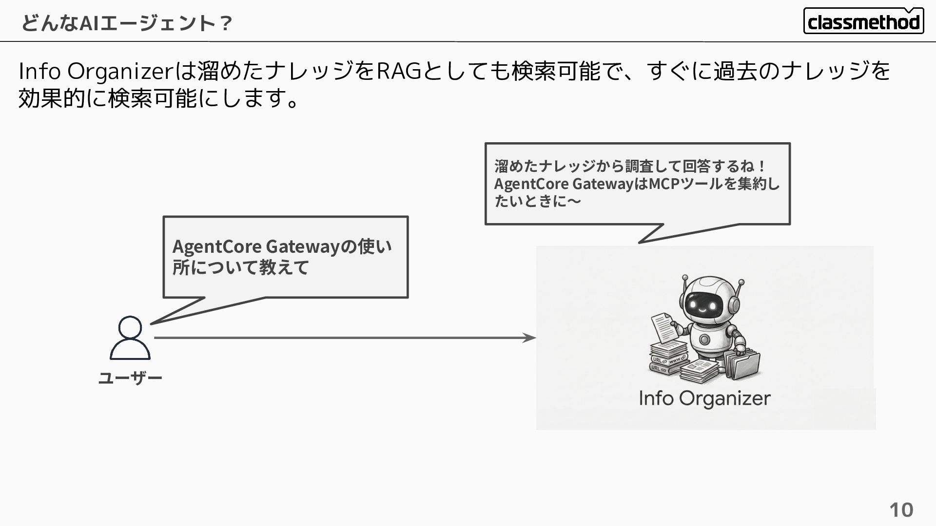 AIエージェント君A AIエージェント君B 混在して良いか?が設計のポイント。共 有したいなら同一メモリリソース、分離 したいならメモリリソースごと分ける。 どちらの履歴も長期記憶として抽出 AgentCore Memory 長期記憶 短期記憶 AIエージェント君A AIエージェント君B ここのエージェント単位で抽出 AgentCore Memory 長期記憶 短期記憶 AgentCore Memory ここのエージェント単位で抽出