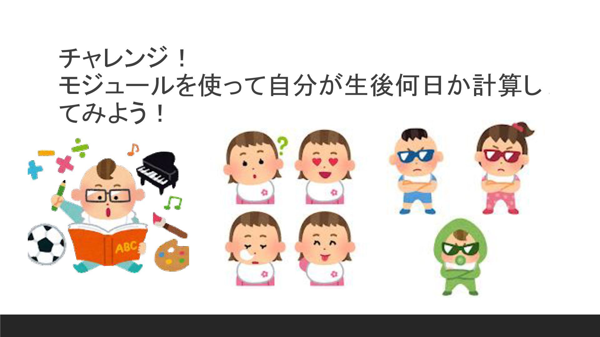 チャレンジ! モジュールを使って自分が生後何日か計算し てみよう!