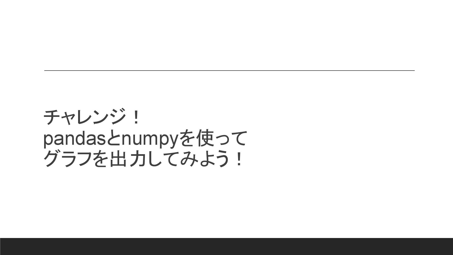 チャレンジ! pandasとnumpyを使って グラフを出力してみよう!