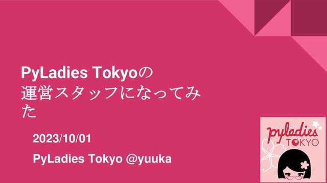 2023年10月1日のPyLadies9周年パーティのLTで使用したスライド。 イベントの内容は以下。 https://pyladies-tokyo.connpass.com/event/296042/