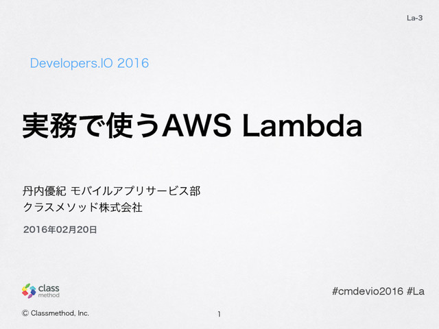 ͜ͷηογϣϯͷΰʔϧ • LambdaΛ࣮Ͱ͏͖͔͚ͬʹͳΔ • ࣮ʹແཧͳ͘औΓೖΕΒΕΔઃܭͷ ͖͔͚ͬΛಘΔ 12 #cmdevio2016 #La