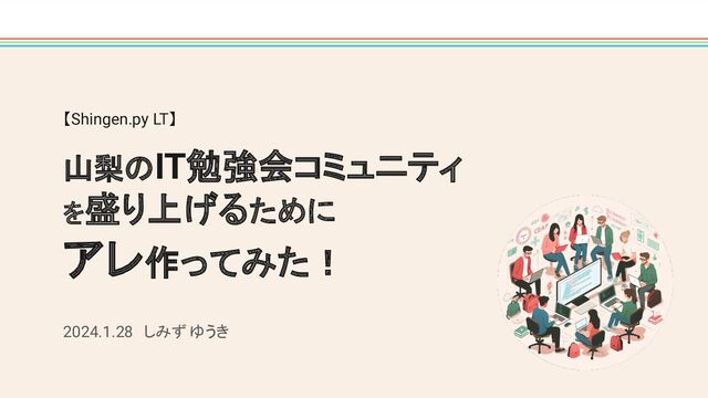 【Shingen.py LT】 山梨のIT勉強会コミュニティ を盛り上げるために アレ作ってみた! 2024.1.28 しみず ゆうき