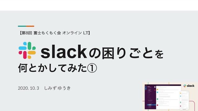 ʲୈճ ࢜͘͘ձ ΦϯϥΠϯ -5ʳ slackͷࠔΓ͝ͱΛ Կͱ͔ͯ͠Έͨᶃ 2020. 10. 3 しみず