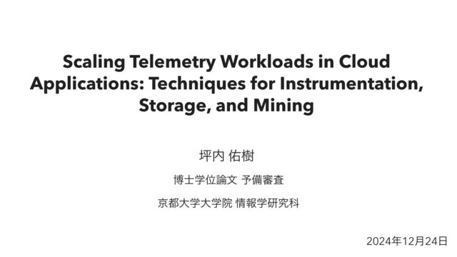 博士学位論文予備審査 / Scaling Telemetry Workloads in Clo...