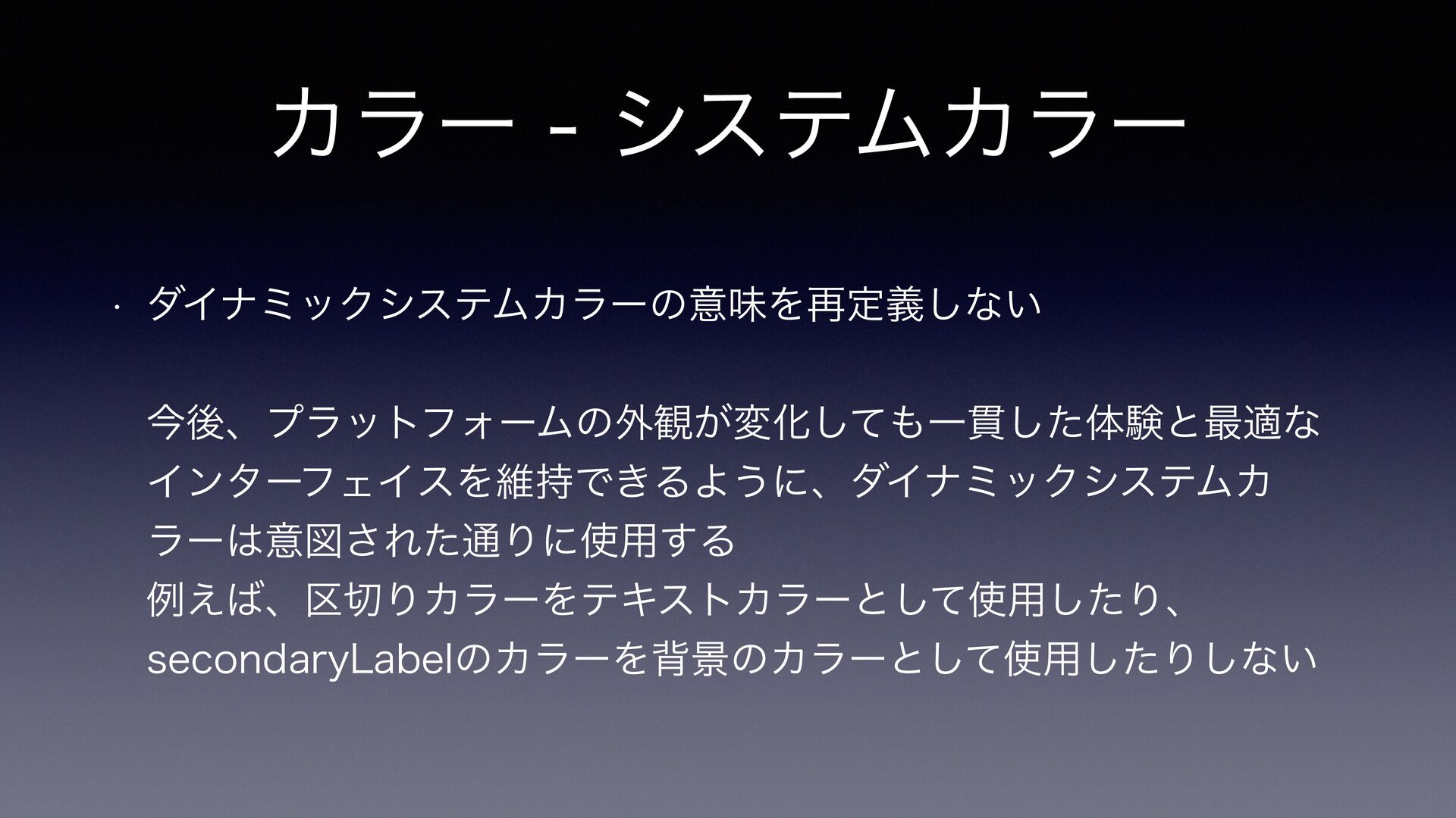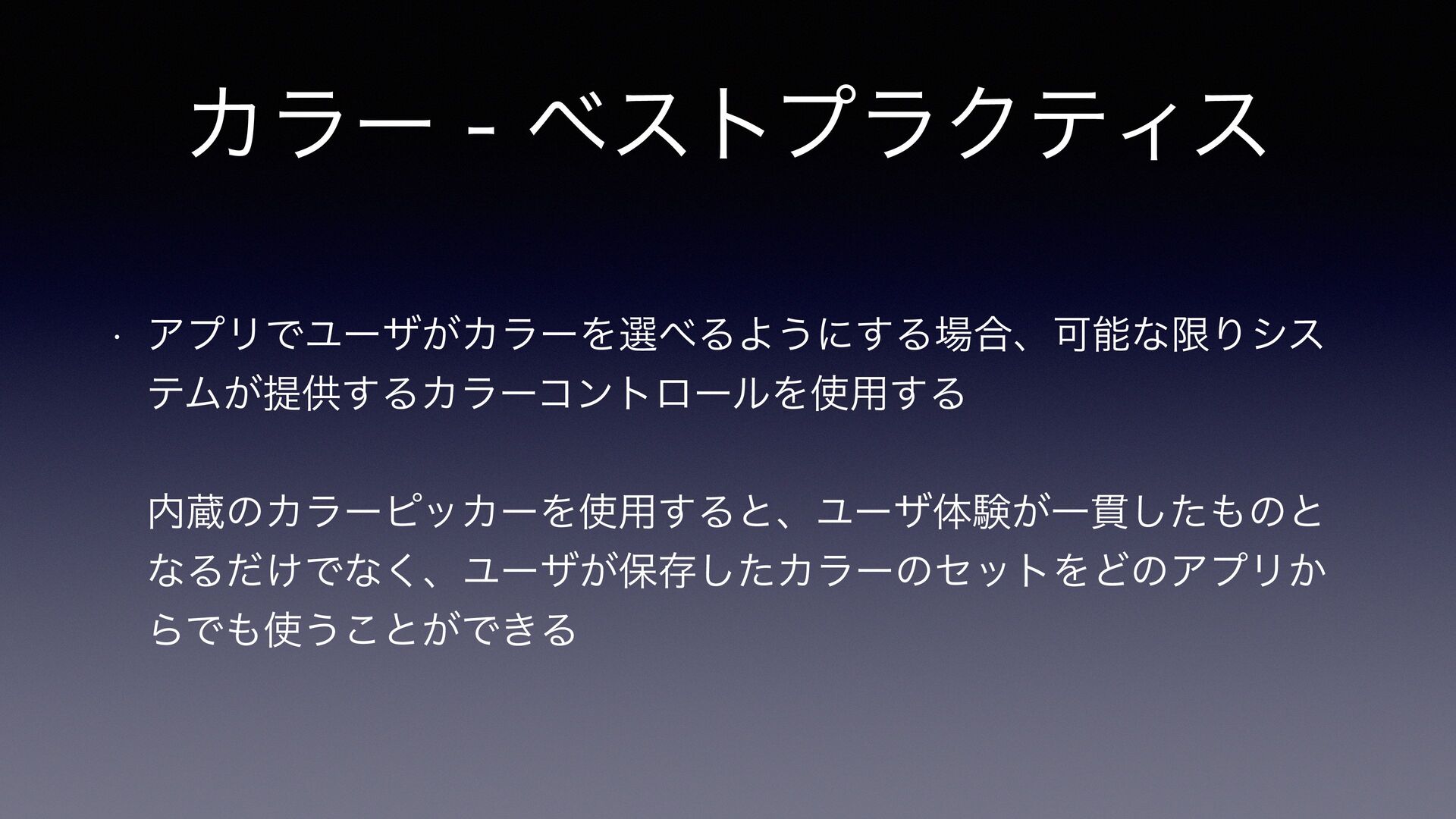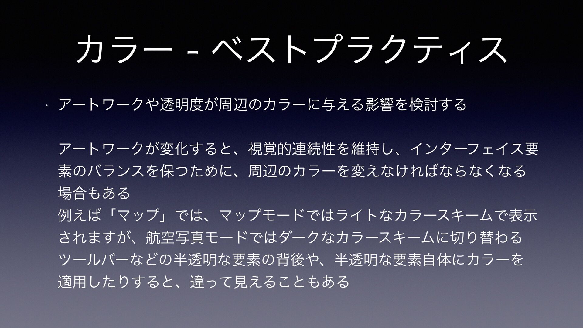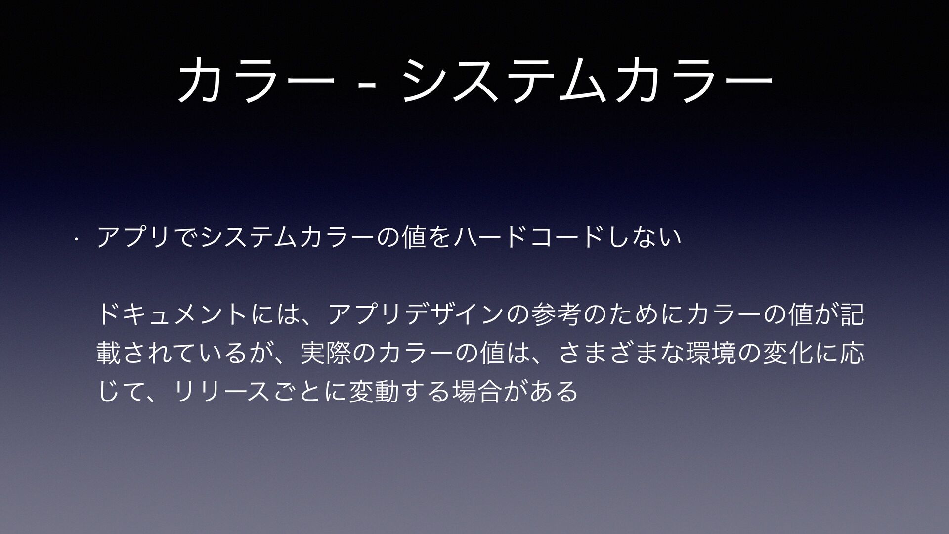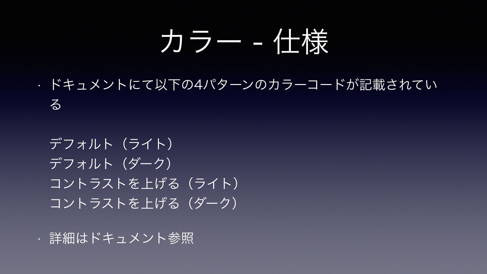 HIGの最初からカラーのページまで抜粋しつつ説明を少し追加したスライド