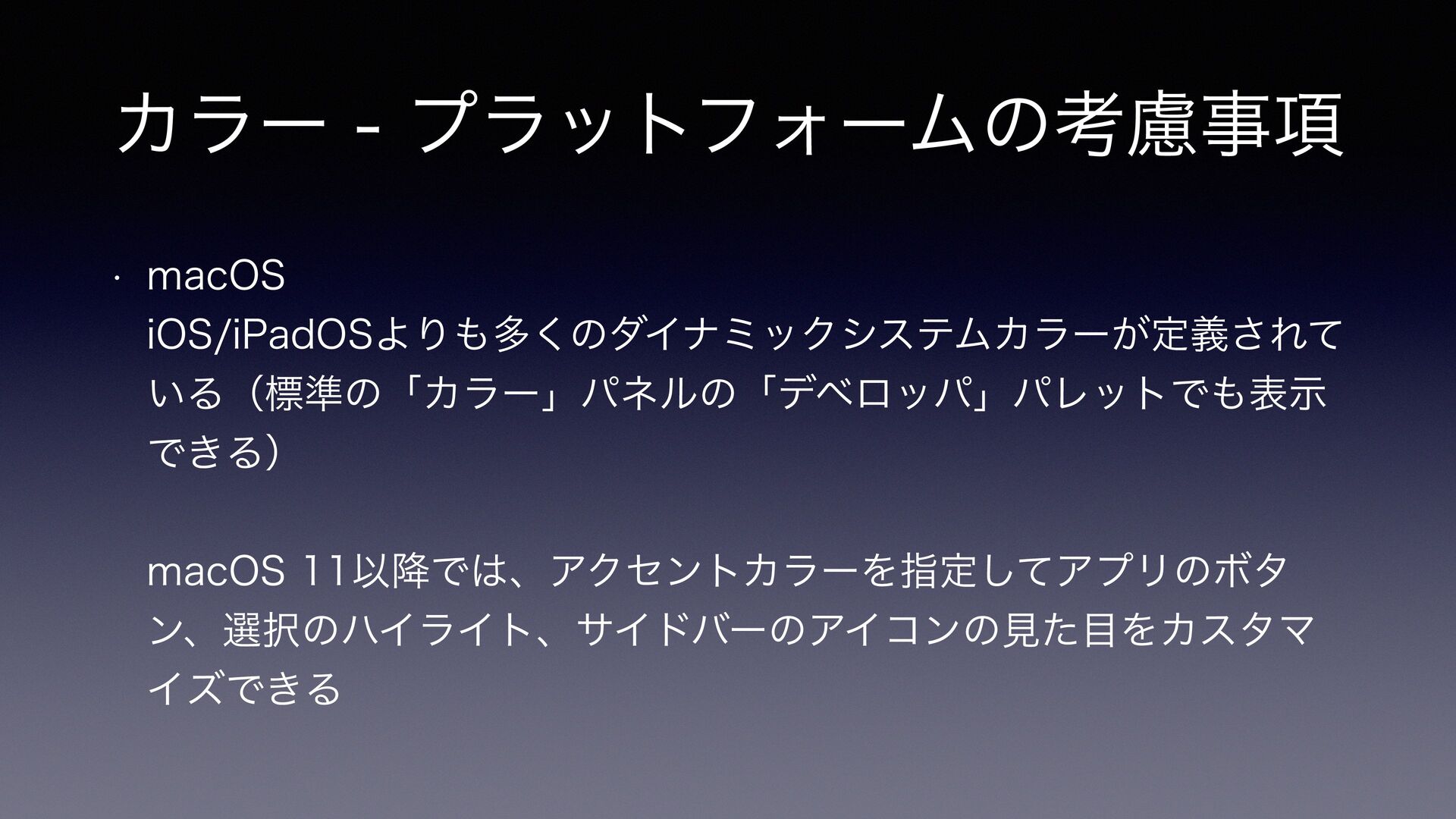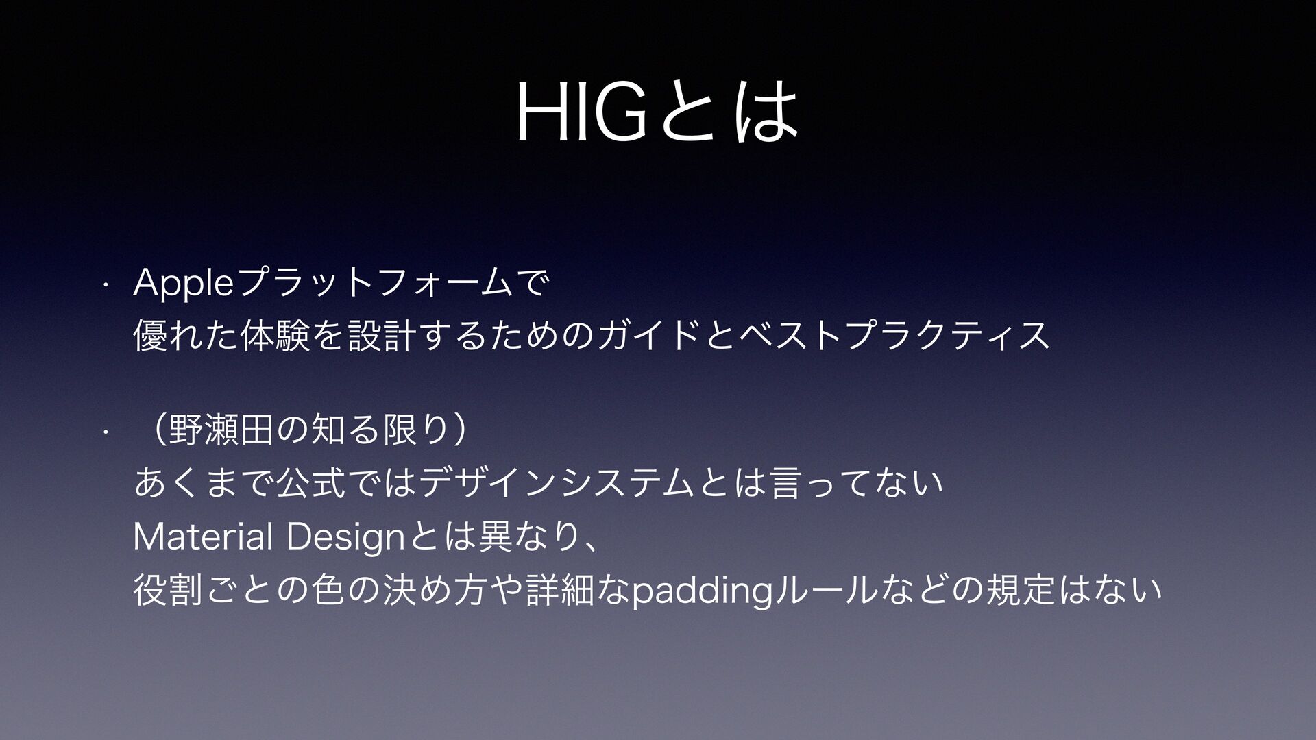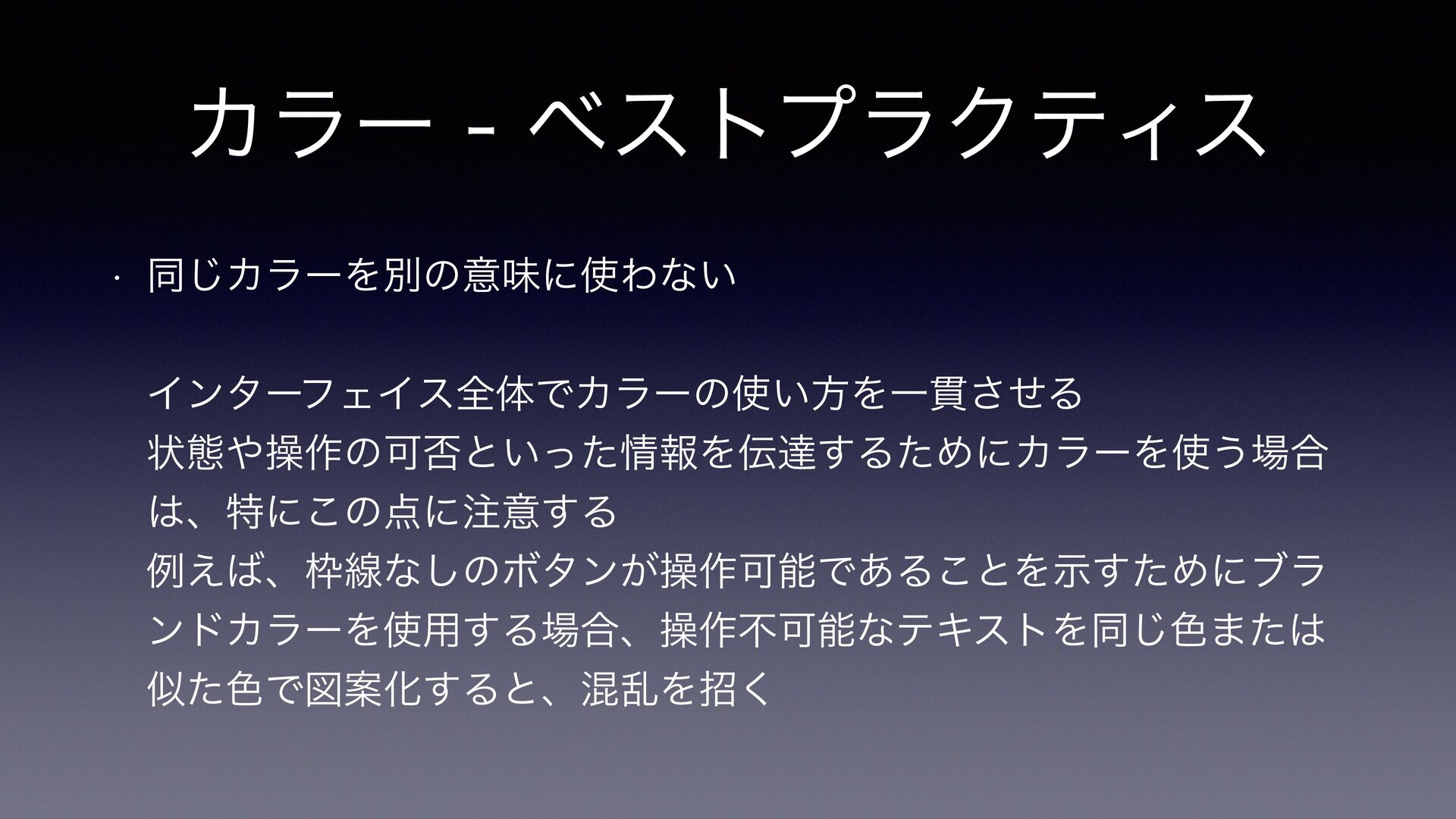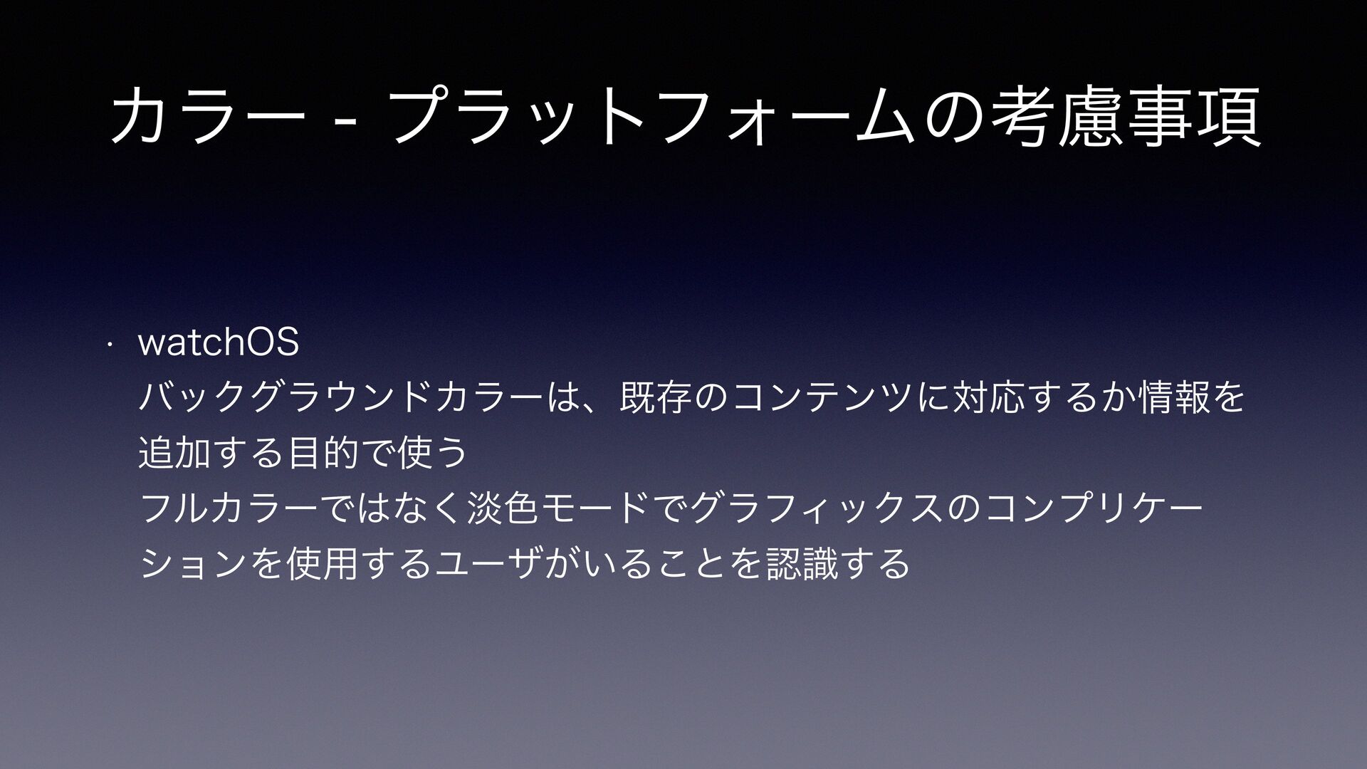 HIGの最初からカラーのページまで抜粋しつつ説明を少し追加したスライド
