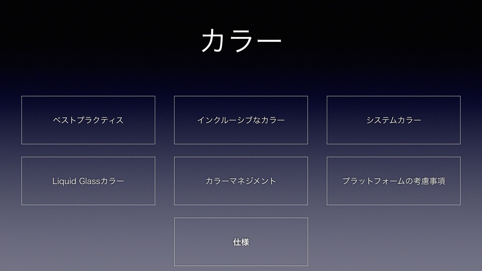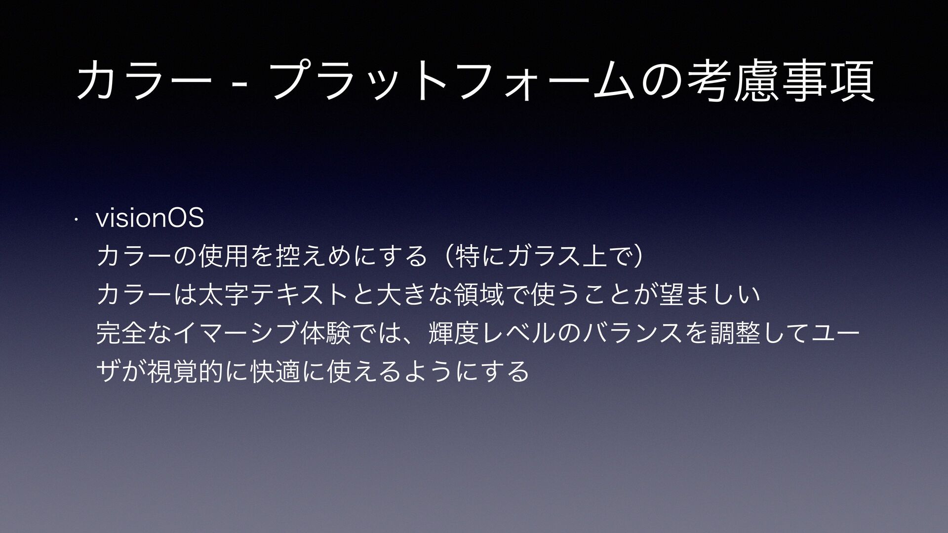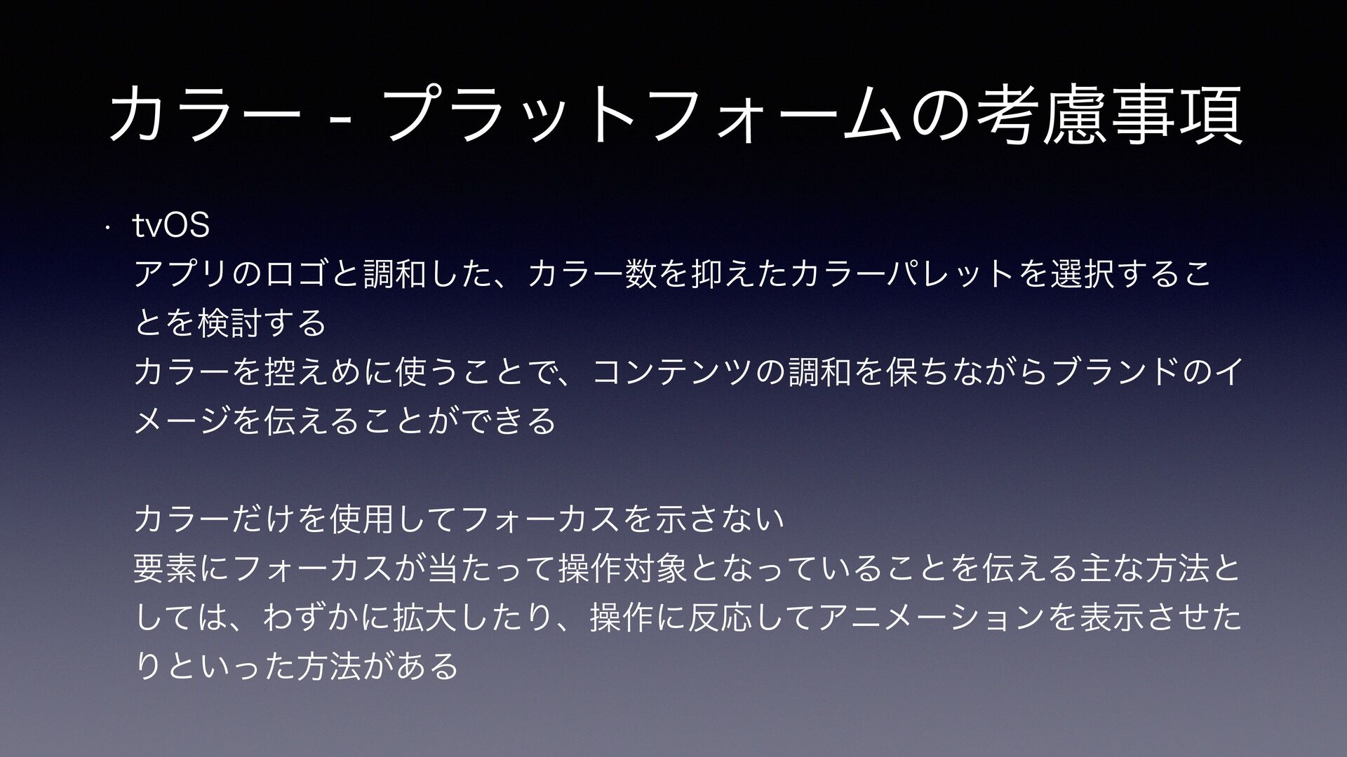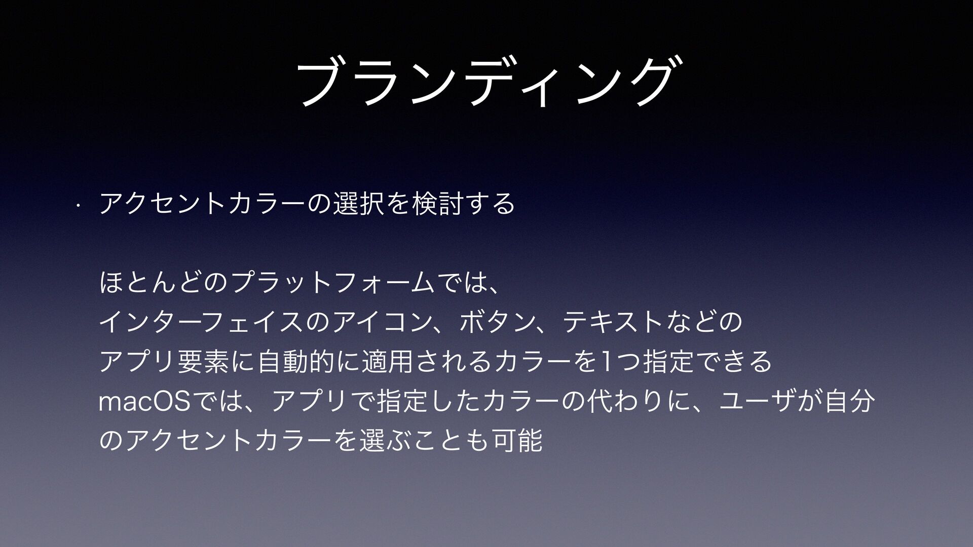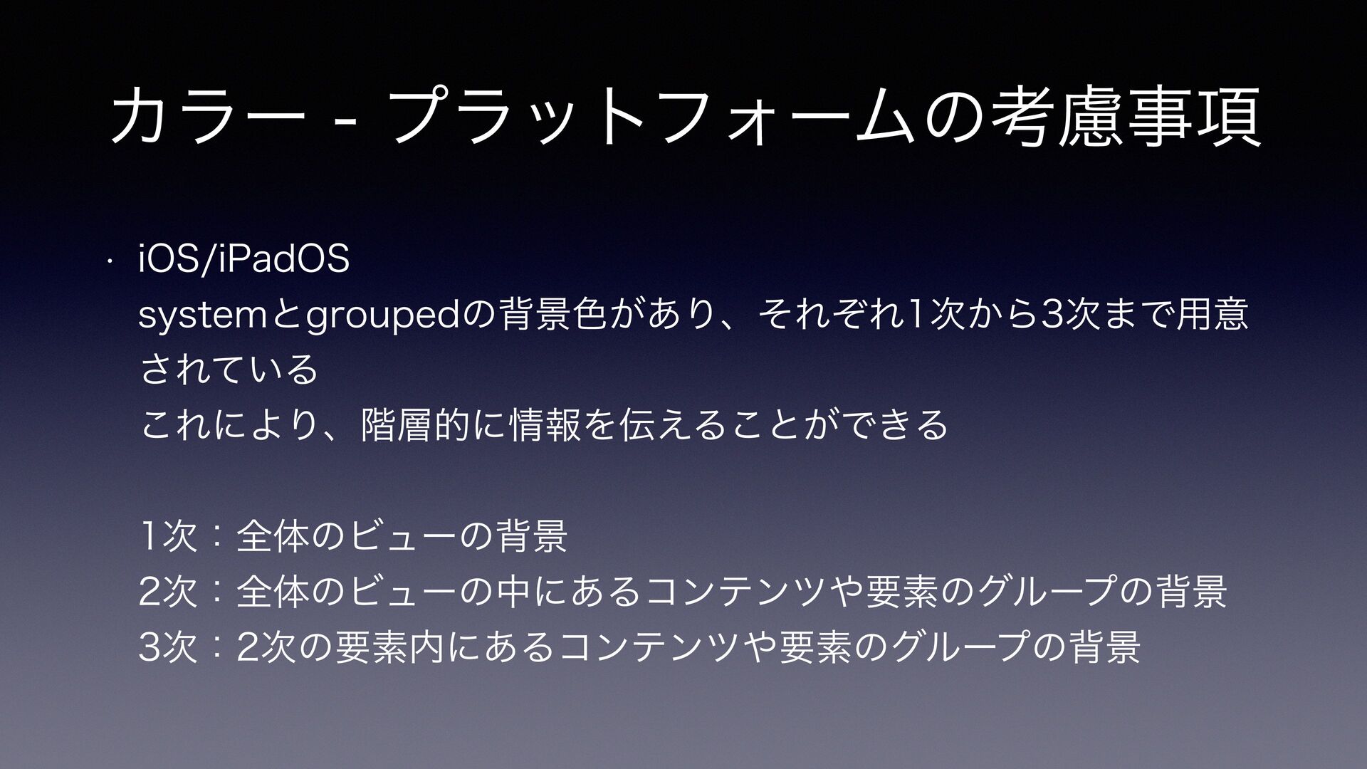 HIGの最初からカラーのページまで抜粋しつつ説明を少し追加したスライド