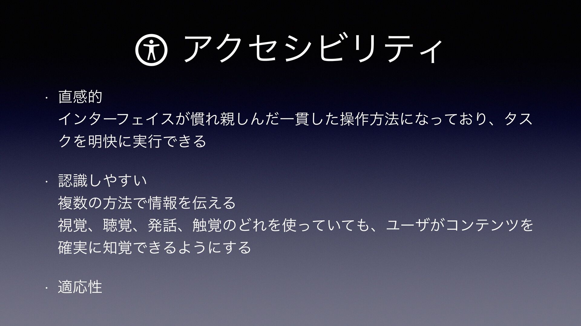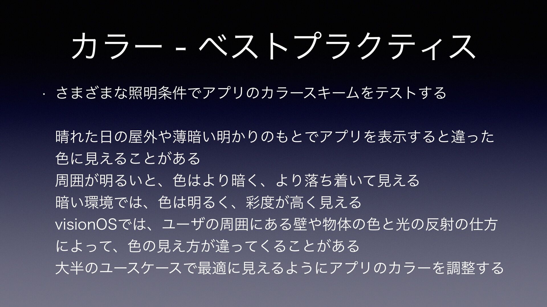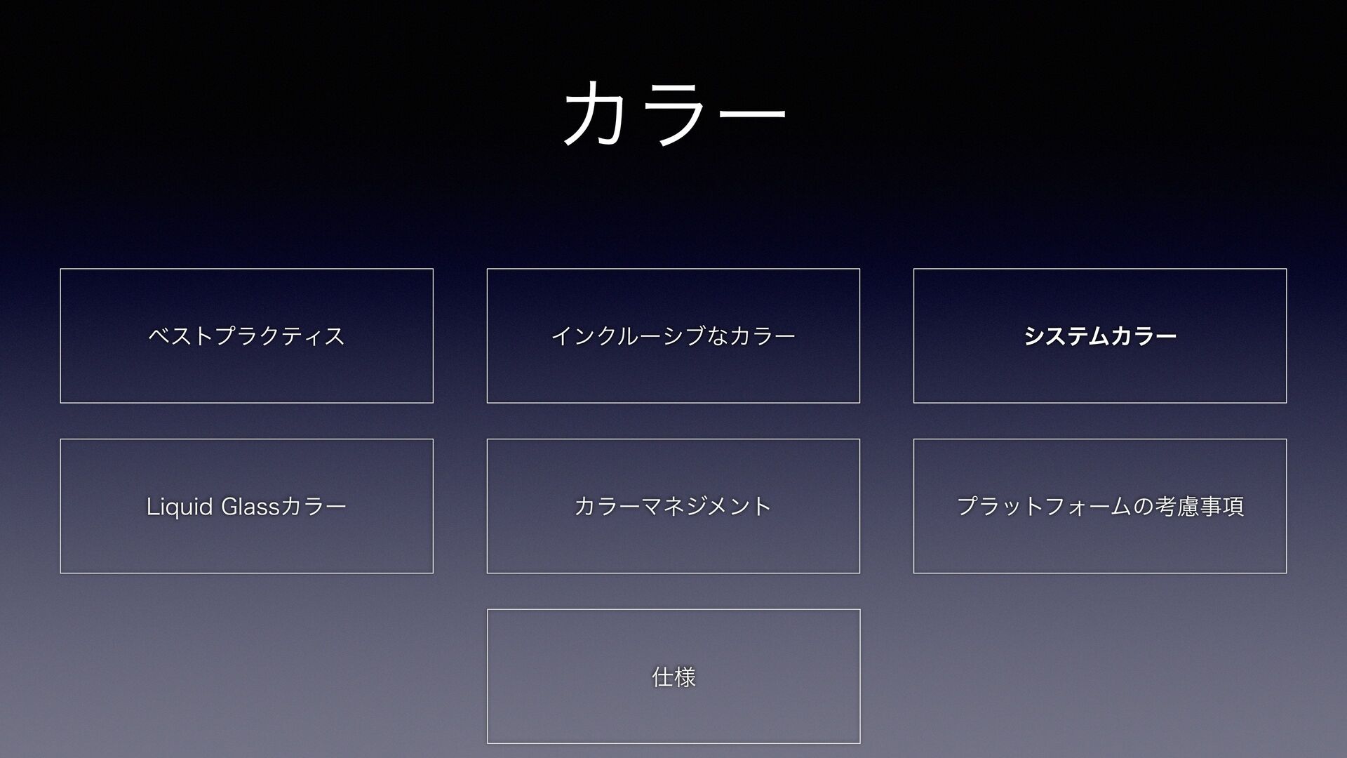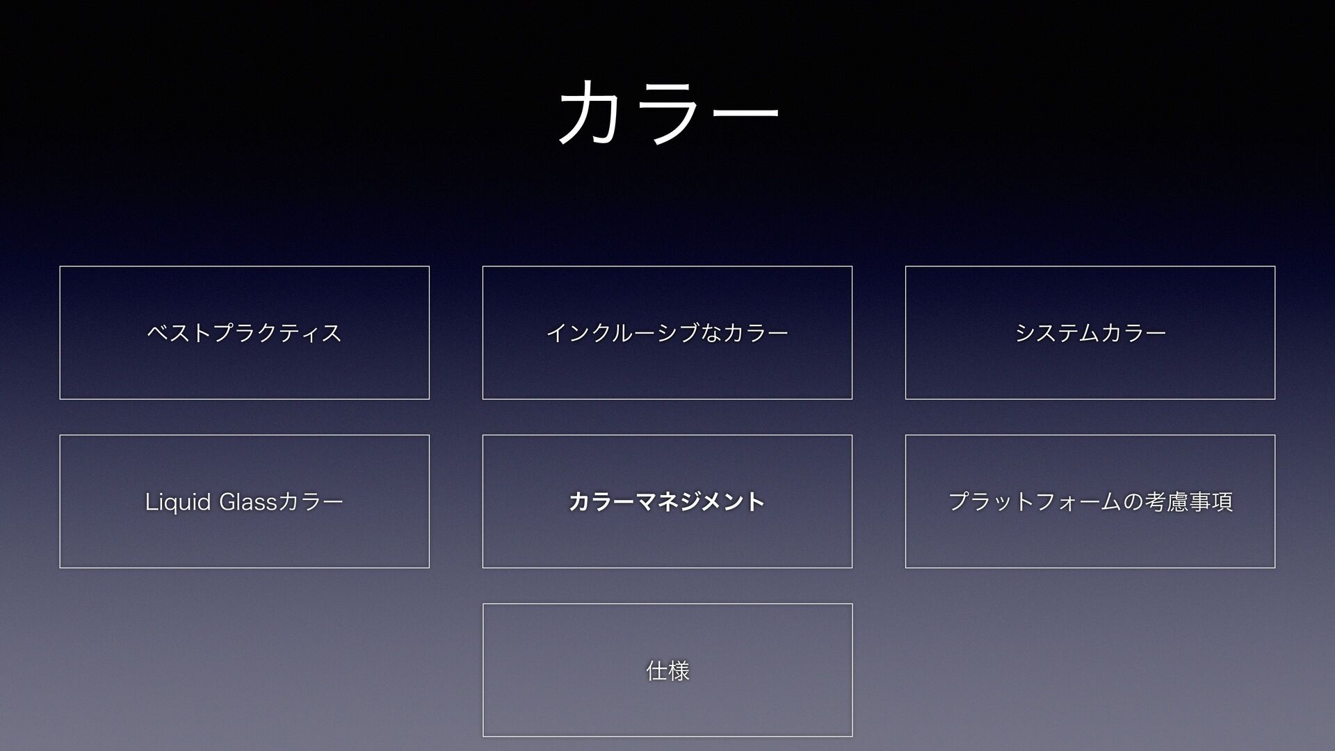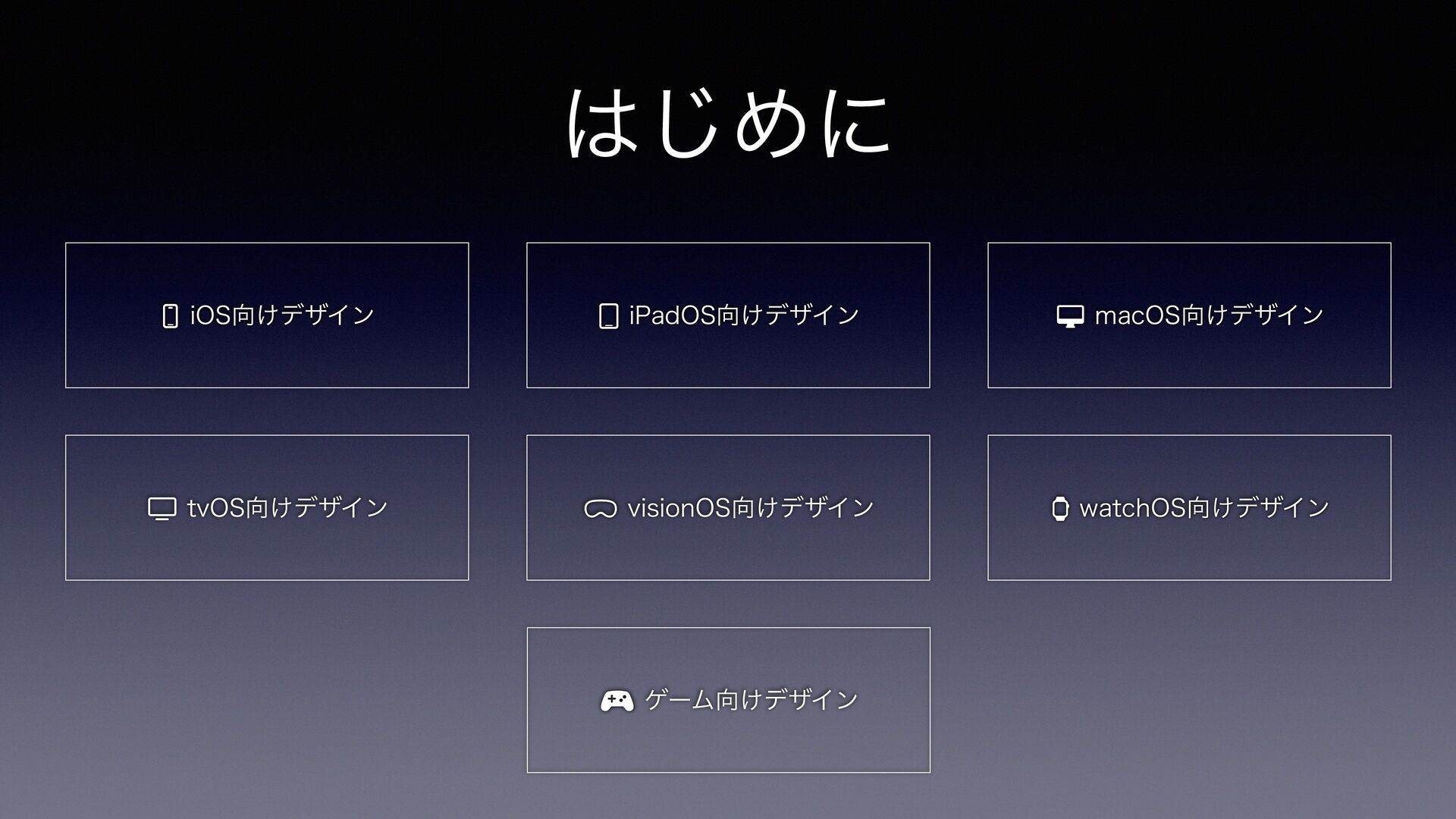 HIGの最初からカラーのページまで抜粋しつつ説明を少し追加したスライド