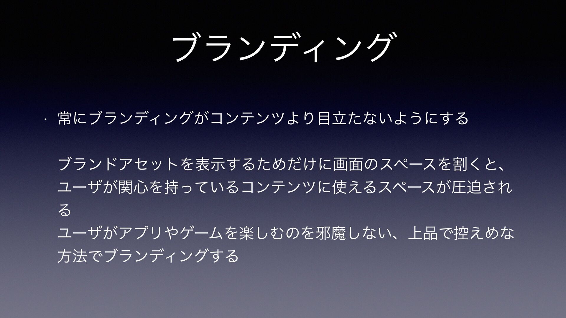 w ৗʹϒϥϯσΟϯά͕ίϯςϯπΑΓཱͨͳ͍Α͏ʹ͢Δ ϒϥϯυΞηοτΛදࣔ͢ΔͨΊ͚ͩʹը໘ͷεϖʔεΛׂ͘ͱɺ Ϣʔβ͕ؔ৺Λ͍࣋ͬͯΔίϯςϯπʹ͑Δεϖʔε͕ѹഭ͞Ε Δ Ϣʔβ͕ΞϓϦήʔϜΛָ͠ΉͷΛअຐ͠ͳ͍ɺ্Ͱ߇͑Ίͳ ํ๏ͰϒϥϯσΟϯά͢Δ ϒϥϯσΟϯά