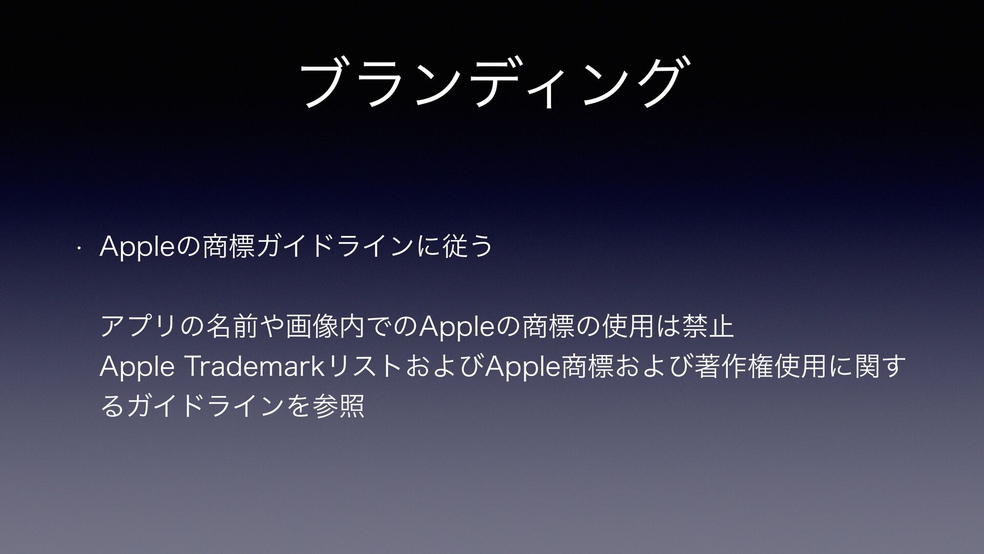 w "QQMFͷඪΨΠυϥΠϯʹै͏ ΞϓϦͷ໊લը૾Ͱͷ"QQMFͷඪͷ༻ېࢭ "QQMF5SBEFNBSLϦετ͓Αͼ"QQMFඪ͓Αͼஶ࡞ݖ༻ʹؔ͢ ΔΨΠυϥΠϯΛࢀর ϒϥϯσΟϯά