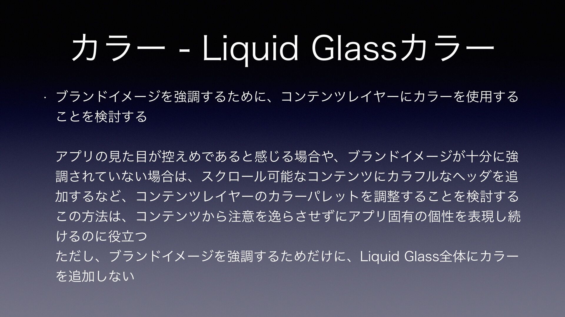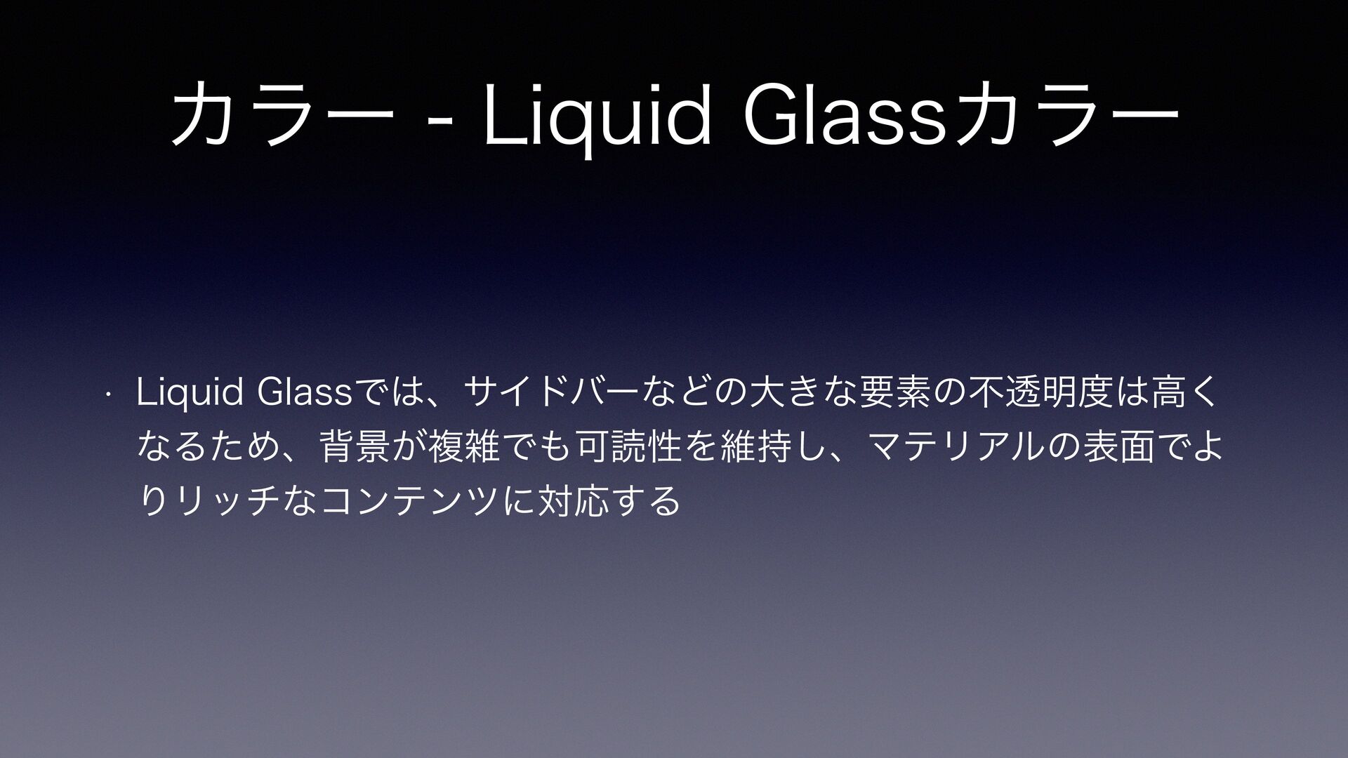 Χϥʔ-JRVJE(MBTTΧϥʔ w πʔϧόʔλϒόʔͳͲͷখ͞ͳཁૉͰɺγεςϜɺͦͷԼ ʹ͋ΔίϯςϯπʹԠͯ͡ɺ-JRVJE(MBTTΛௐͯ͠໌Δ͍ݟͨ ͱ҉͍ݟͨͷؒͰΓସ͑Δ͜ͱ͕͋Δ ͜ΕΒͷཁૉͷγϯϘϧςΩετɺϞϊΫϩͷΧϥʔεΩʔϜ ʹै͏ͨΊɺԼʹ͋Δίϯςϯπ͕໌Δ͍߹҉͘ͳΓɺ҉͍ ߹໌Δ͘ͳΔ