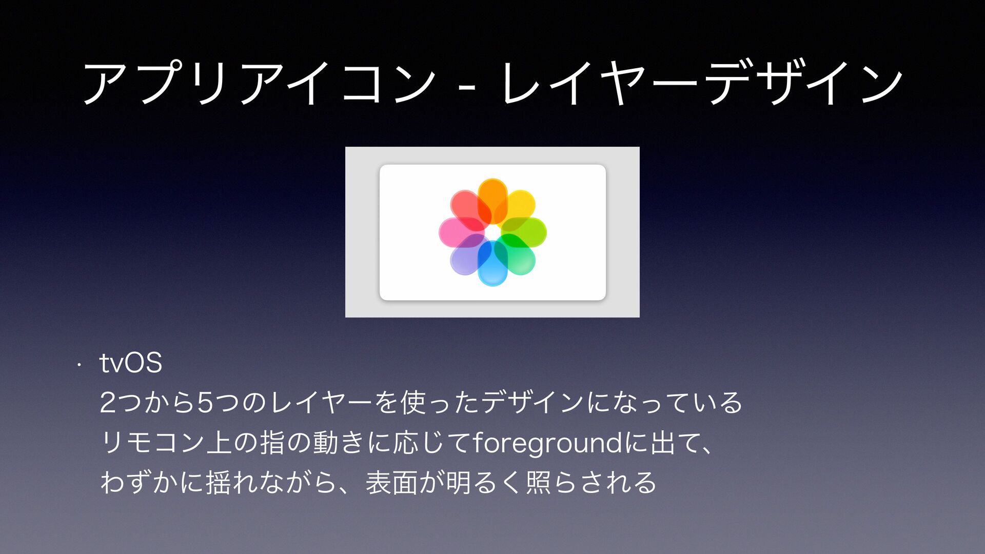 ΞϓϦΞΠίϯϨΠϠʔσβΠϯ w *DPO$PNQPTFSʢJ04ɺJ1BE04ɺNBD04ɺ͓ΑͼXBUDI04ͷΞΠίϯʣ ΞΠίϯͷόοΫάϥϯυϨΠϠʔΛఆٛ͠ɺ ϑΥΞάϥϯυϨΠϠʔͷஔΛௐ͠ɺಁ໌ͳͲͷࢹ֮ޮՌΛద༻͠ɺ σϑΥϧτɺμʔΫɺΫϦΞɺ୶৭ͳͲͷݟͨͷόϦΤʔγϣϯΛఆٛ͠ɺ 9DPEFͰ༻͢ΔͨΊʹΞΠίϯΛॻ͖ग़͢