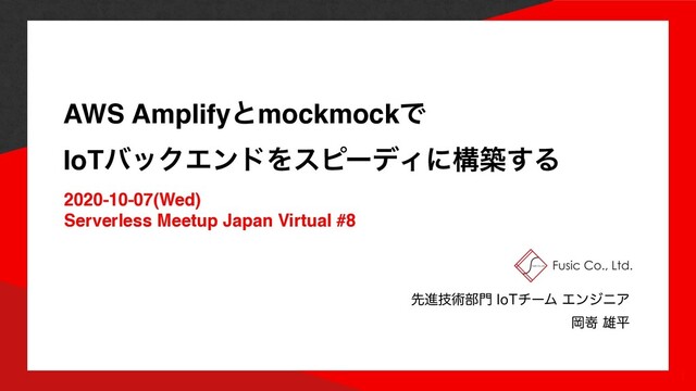 AWS AmplifyͱmockmockͰ IoTόοΫΤϯυΛεϐʔσΟʹߏங͢Δ 2020-10-07(Wed) Serverless Meetup Japan Virtual #8 ઌਐٕज़෦*P5νʔϜΤϯδχΞ