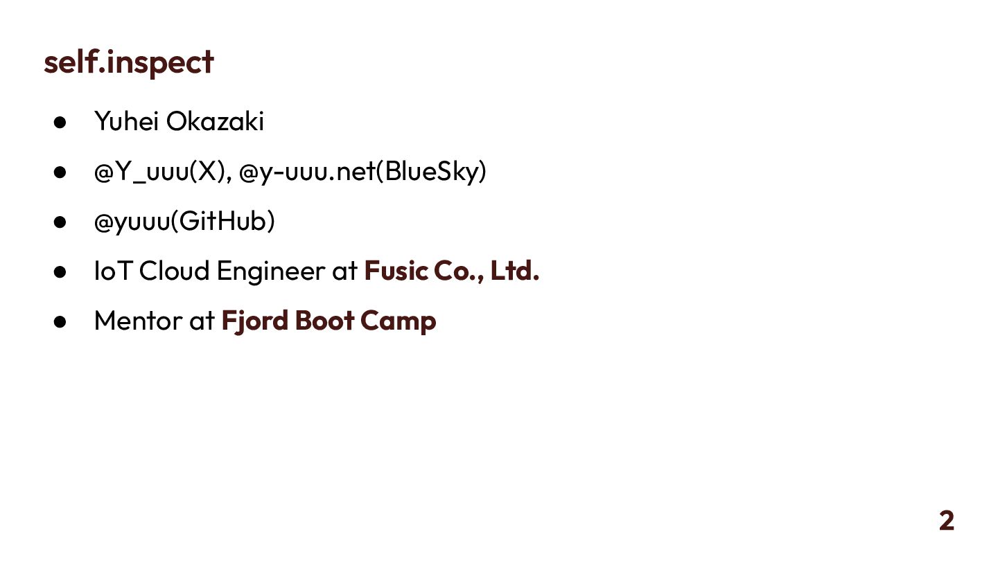 2. self.inspect • Yuhei Okazaki • @Y_uuu(X), @y-uuu.net(BlueSky) • @yuuu(GitHub) •