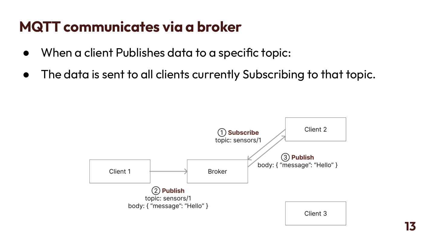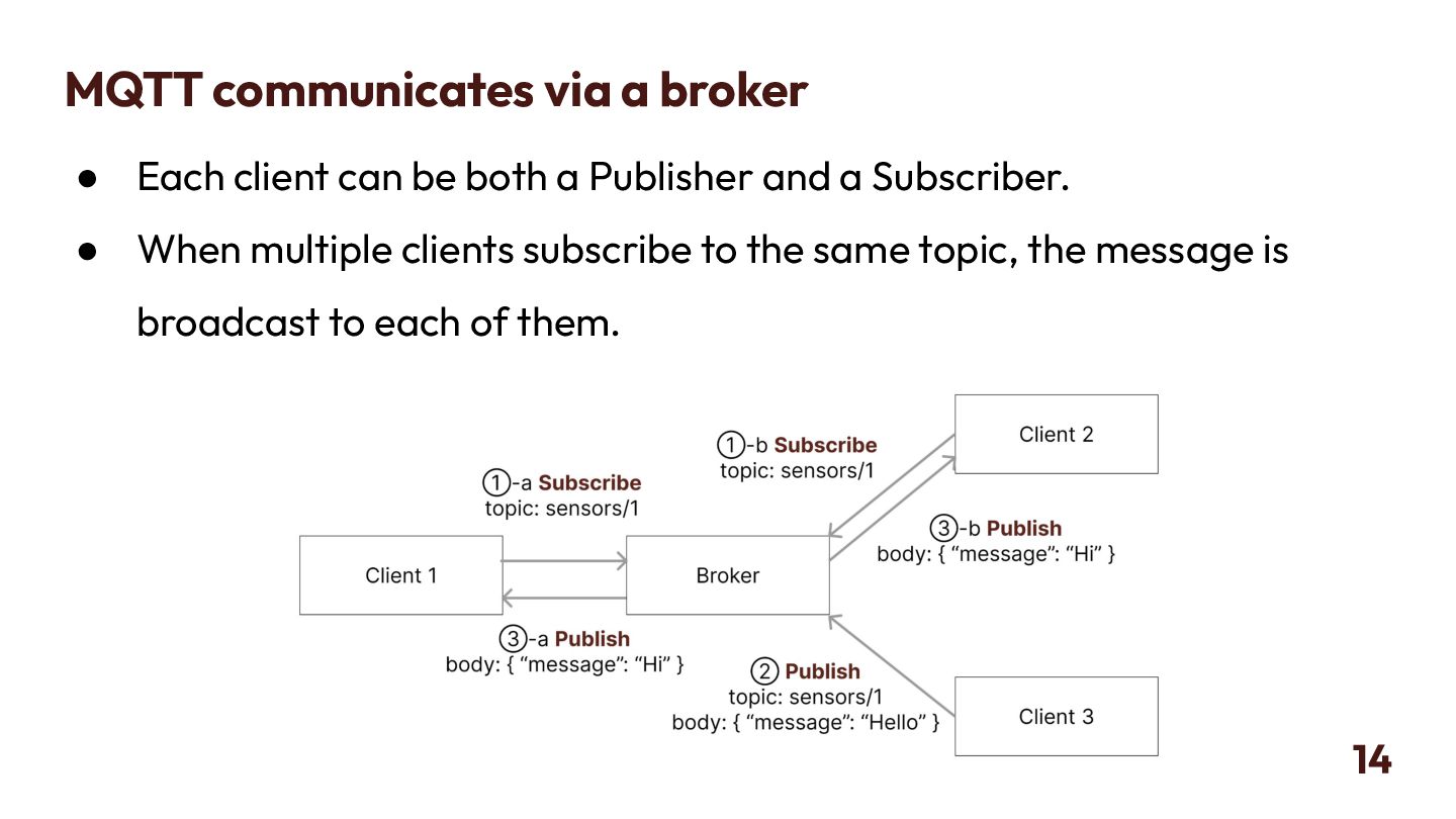 data to a specific topic: • The data is sent to all clients currently Subscribing to that topic. 13
