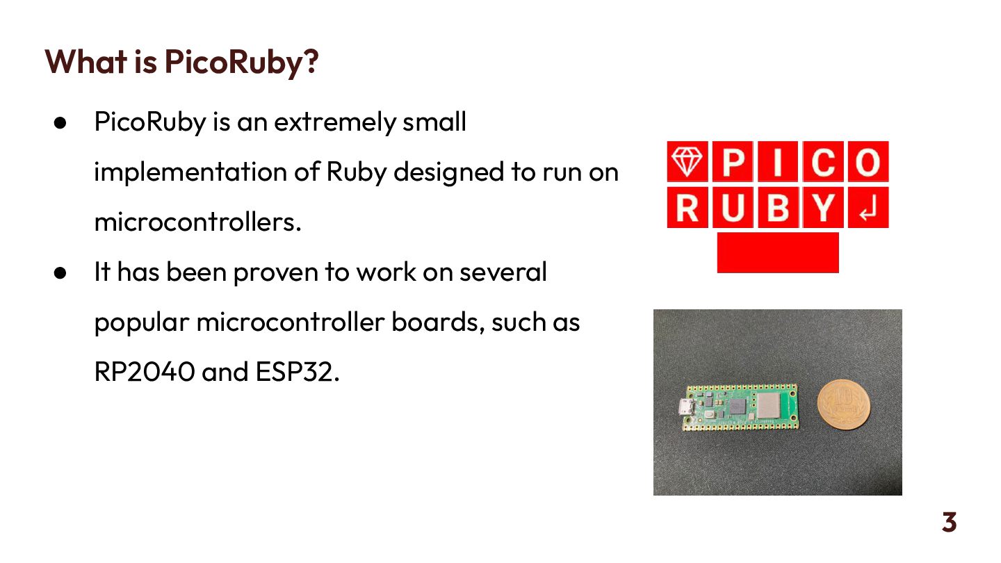 3. What is PicoRuby? • PicoRuby is an extremely small implementation