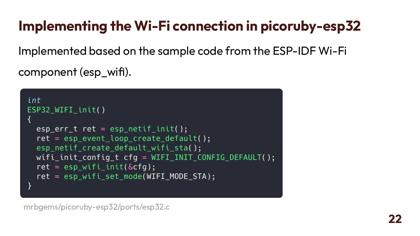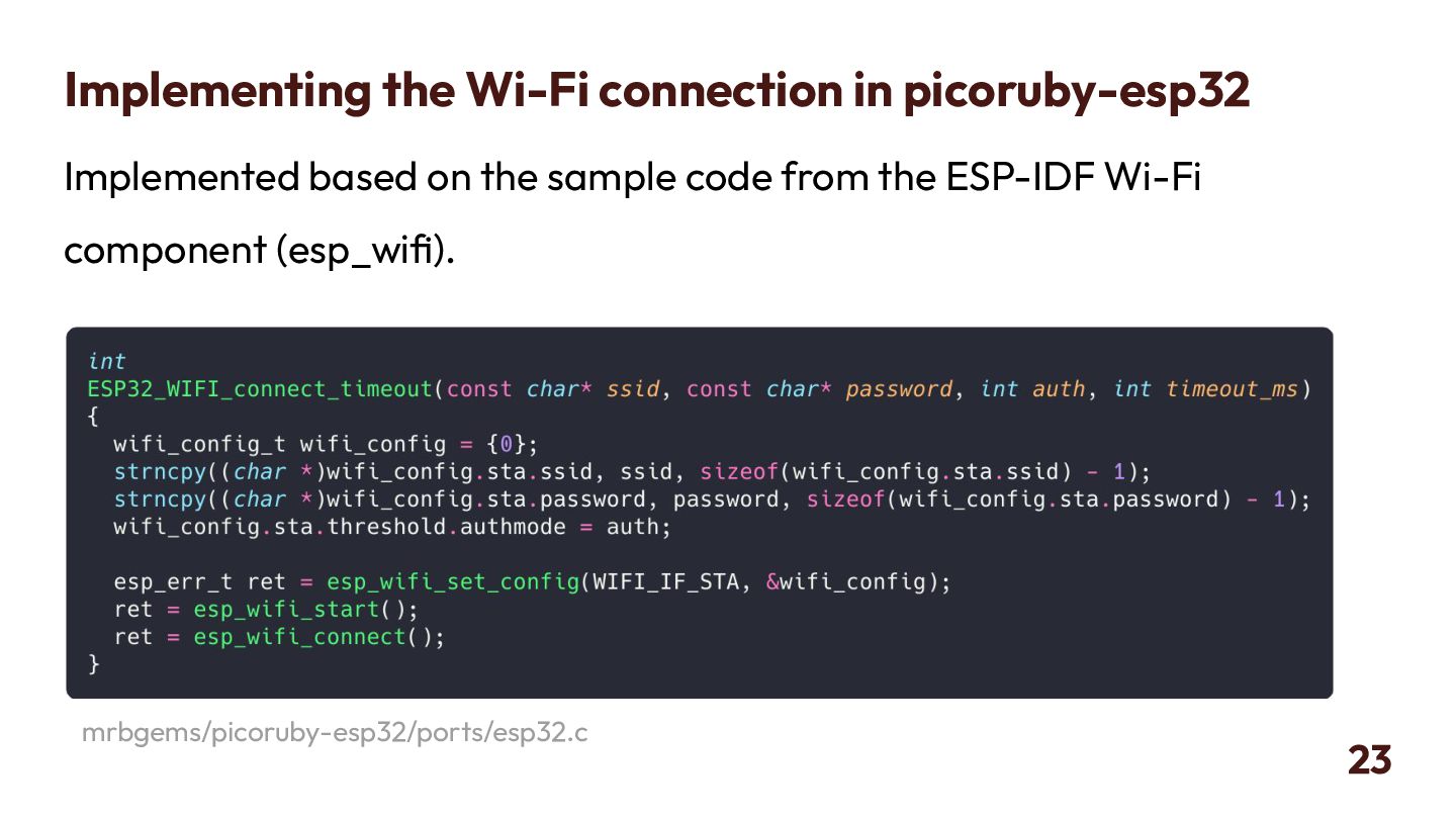 19. Implementing the Wi-Fi connection in picoruby-esp32 Implemented based on the
