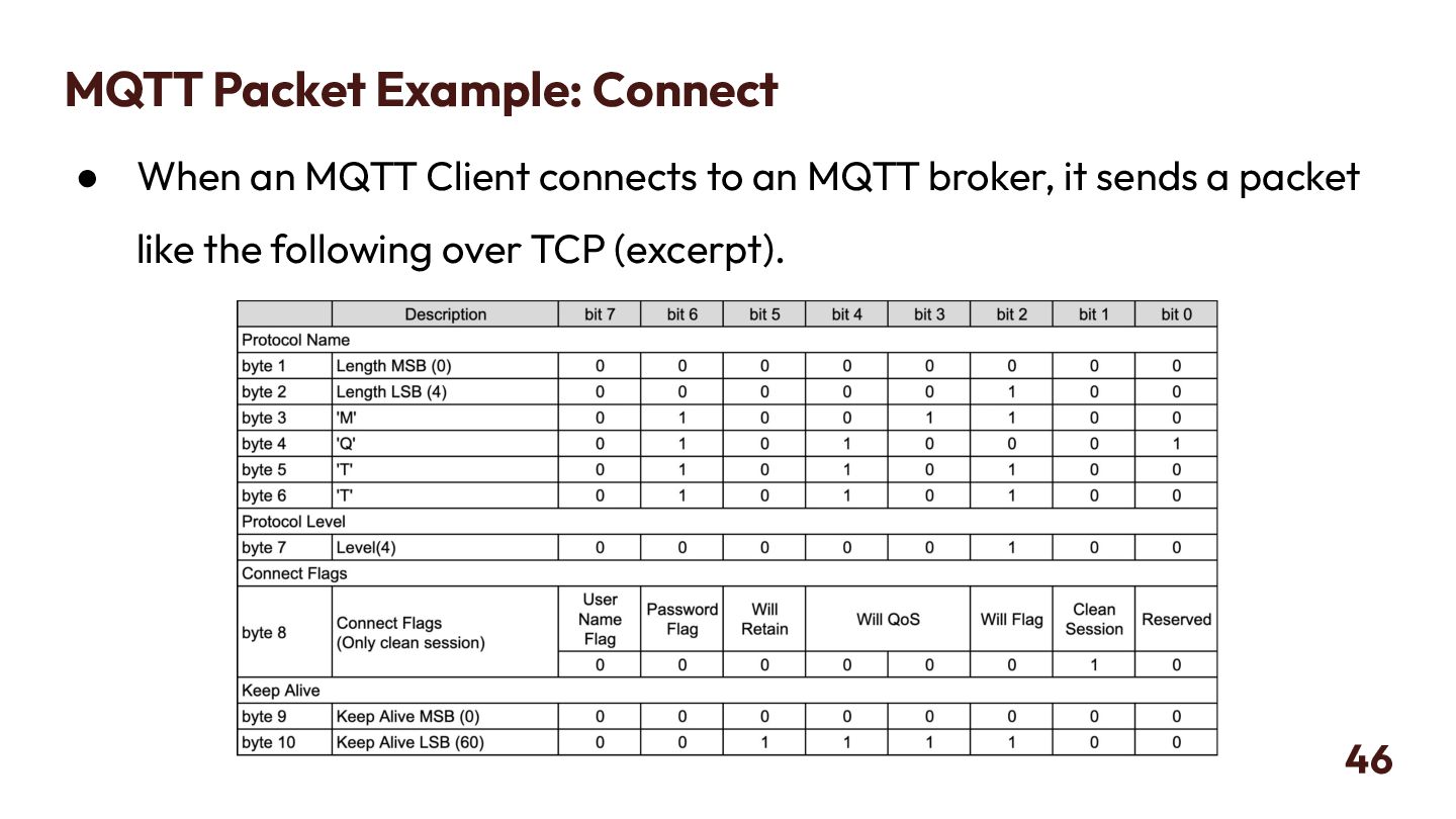 to an MQTT broker, it sends a packet like the following over TCP (excerpt). 46
