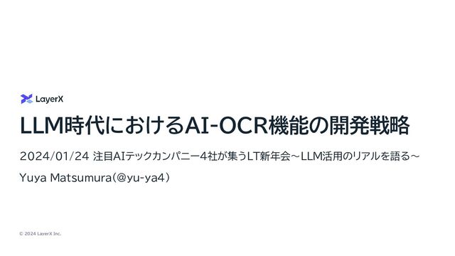 2024年1月24日 【オフライン限定開催】注目AIテックカンパニー4社が集うLT新年会〜LLM活用のリアルを語る〜(https://lapras.connpass.com/event/305577/) における発表資料です。