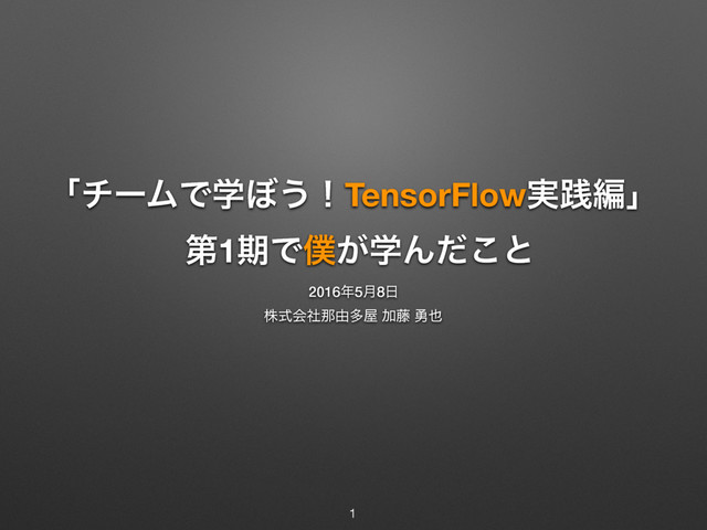 ʮνʔϜͰֶ΅͏ʂTensorFlow࣮ફฤʯ ୈ1ظͰֶ͕Μͩ͜ͱ 20165݄8 גࣜձࣾಹ༝ଟ Ճ౻ ༐ 1