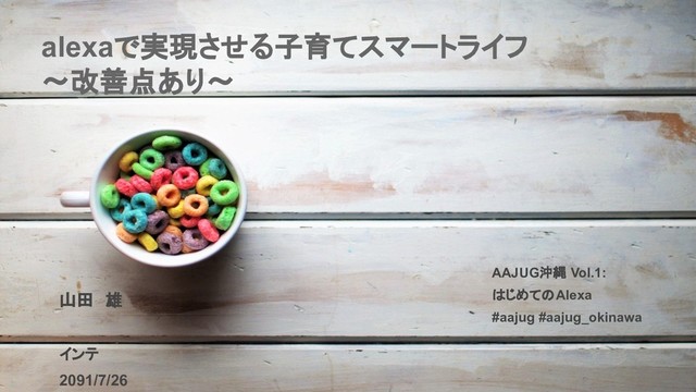 alexaで実現させる子育てスマートライフ 〜改善点あり〜 AAJUG沖縄 Vol.1: はじめてのAlexa #aajug #aajug_okinawa 山田 雄 インテ 2091/7/26