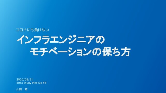 インフラエンジニアの モチベーションの保ち方 コロナにも負けない 2020/08/31 Infra Study Meetup #5 山田 雄