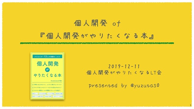 個人開発 of 『個人開発がやりたくなる本』 2019-12-11 個人開発がやりたくなるLT会
