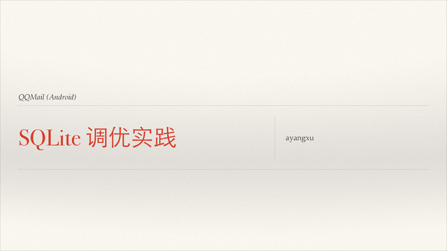QQMail (Android) SQLite 调优实践 ayangxu