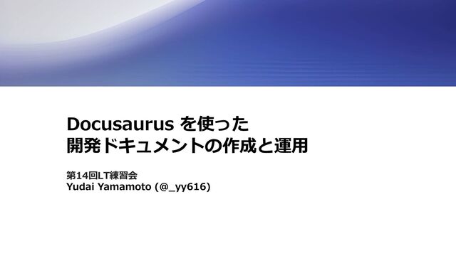Docusaurus を使った 開発ドキュメントの作成と運⽤ 第14回LT練習会 Yudai Yamamoto (@_yy616)