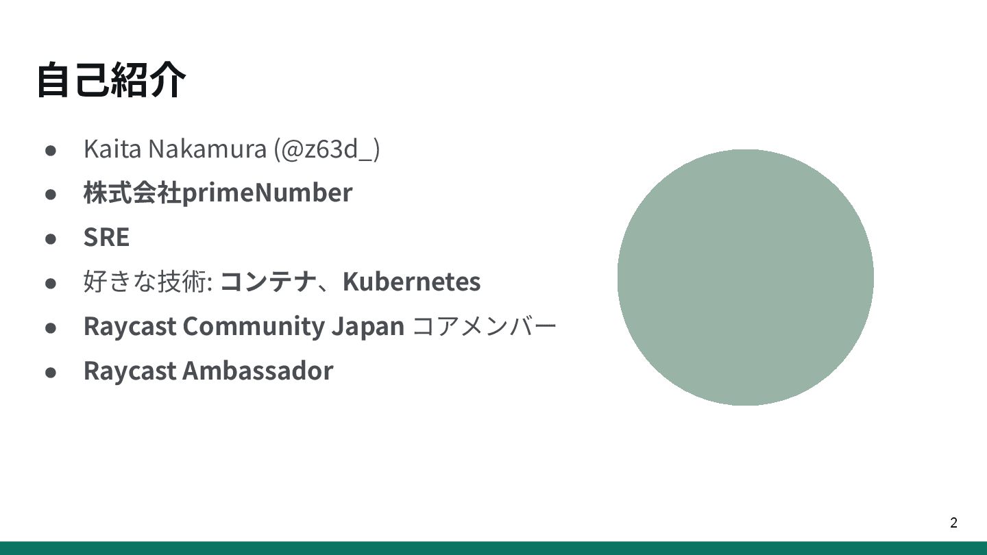 SRE • 好きな技術: コンテナ、Kubernetes • Raycast Community Japan コアメンバー • Raycast Ambassador
